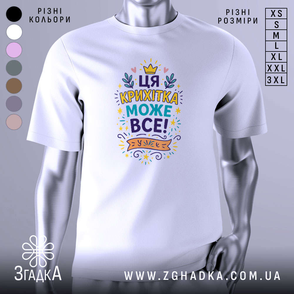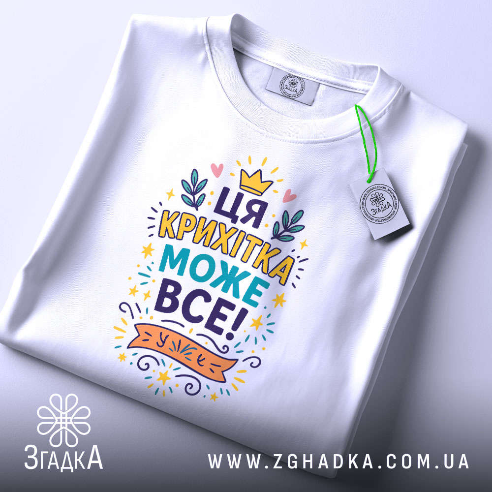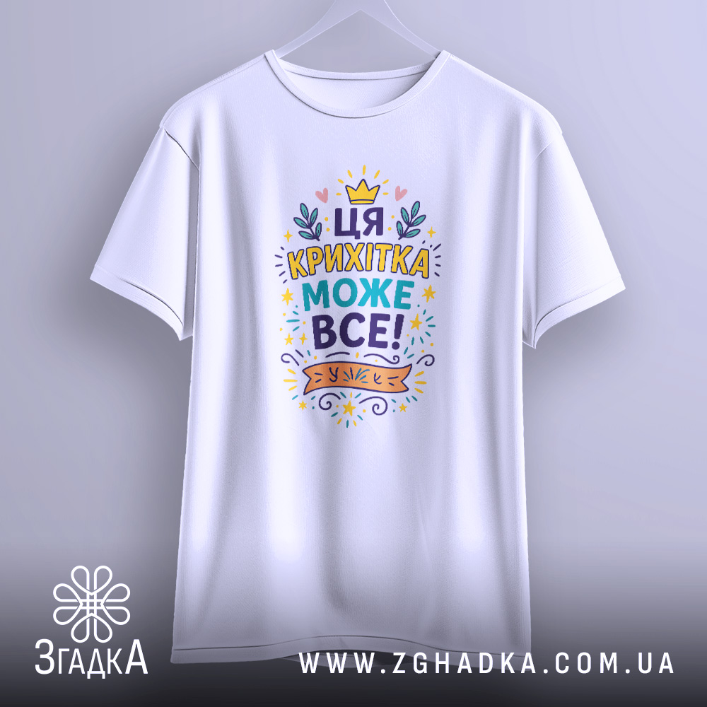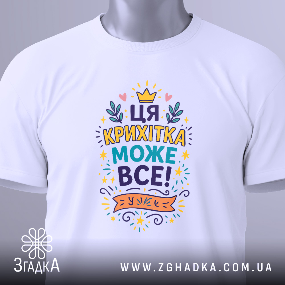 Футболка крихітка може все – це не просто одяг, а стильний аксесуар, який підкреслить вашу індивідуальність і настрій. Обирайте якість та комфорт разом з нами!