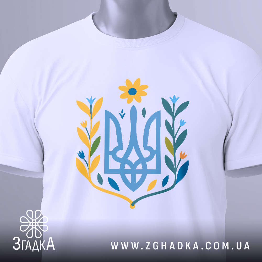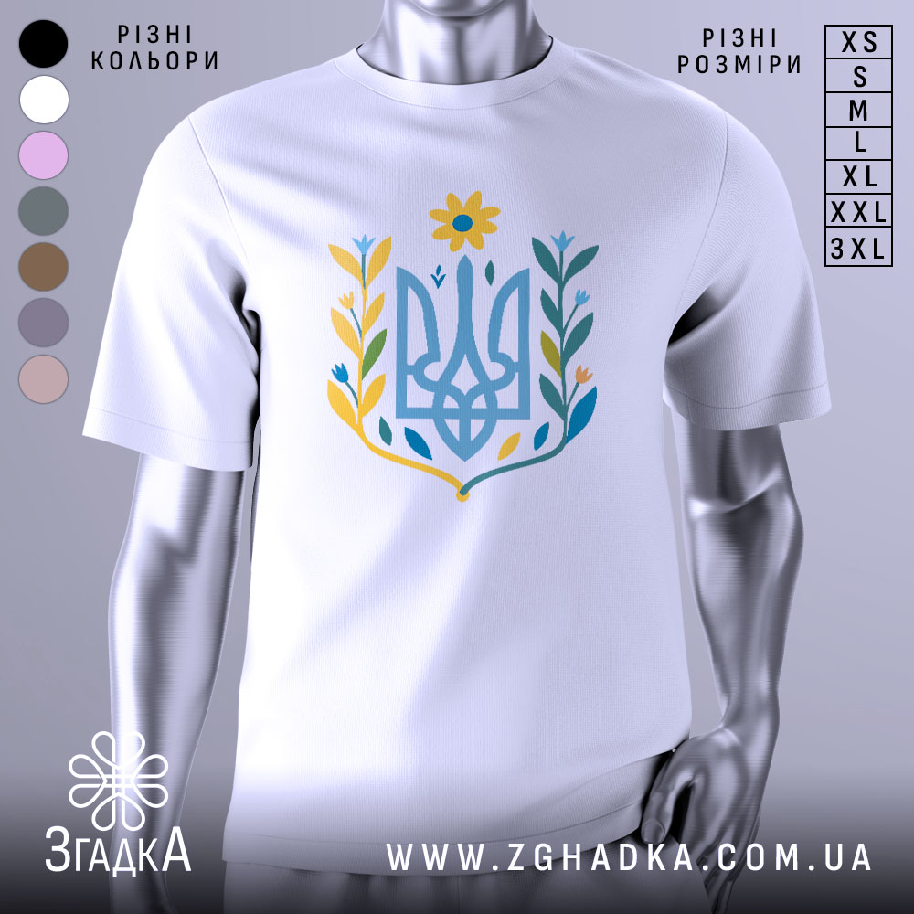 Ця футболка виготовлена з якісних матеріалів, що забезпечують комфорт під час носіння. Принт у вигляді квіткового тризуба символізує єдність та красу української культури, роблячи її ідеальним вибором для патріотів.