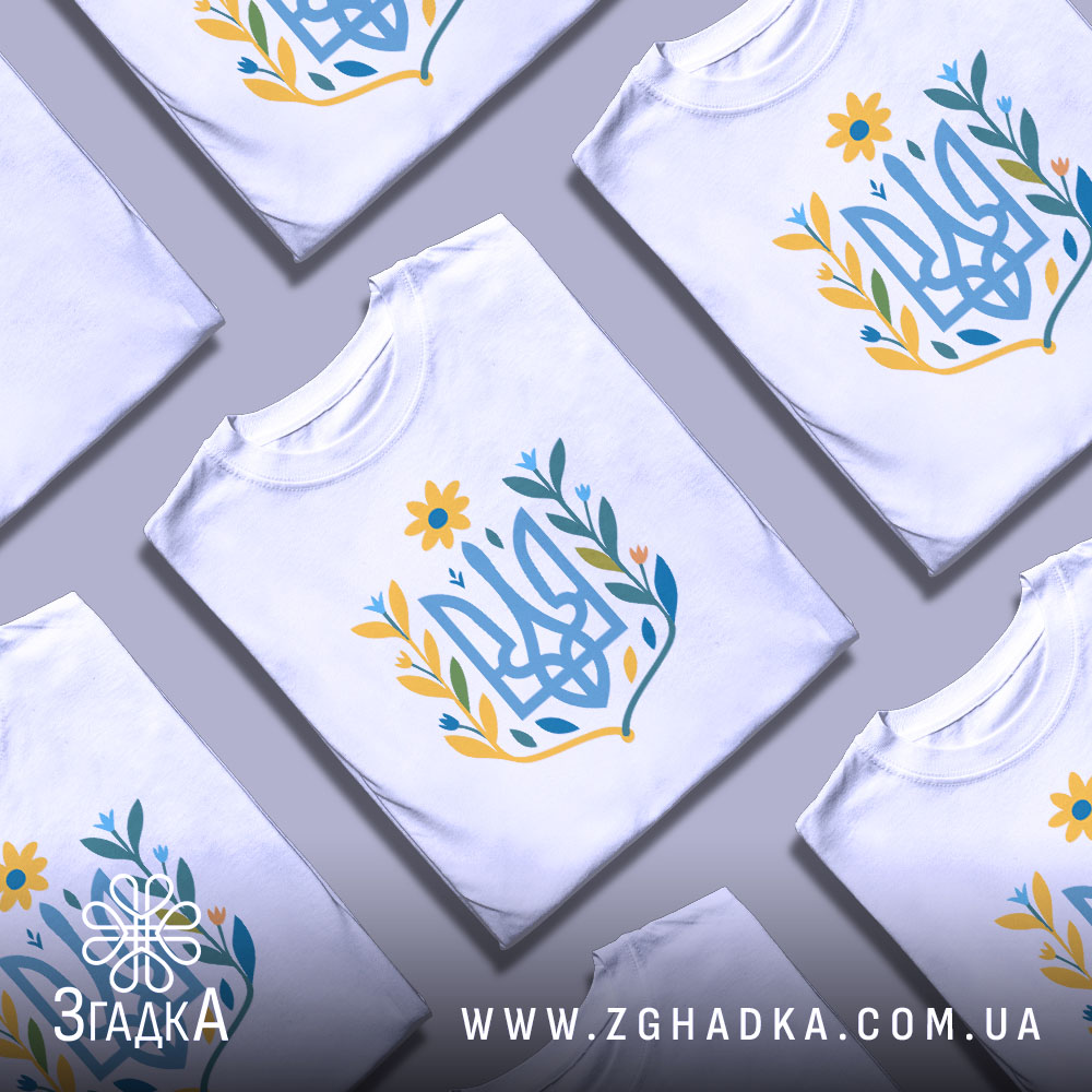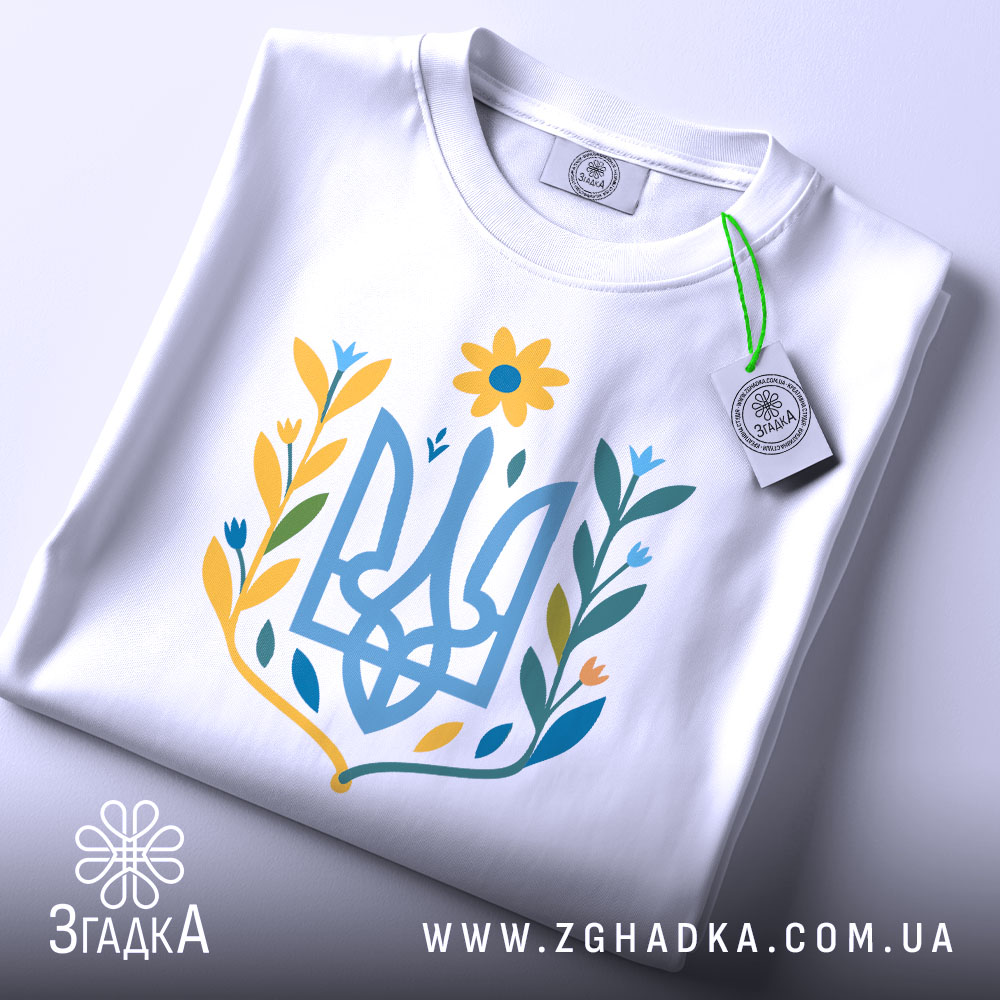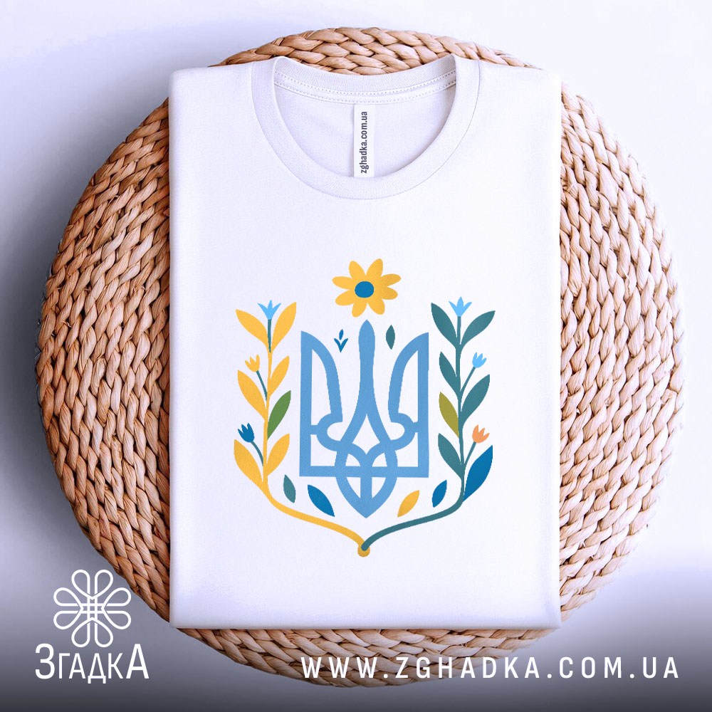Стильна футболка з квітковим тризубом – символом краси та сили. Ідеальний вибір для патріотів та любителів комфорту.