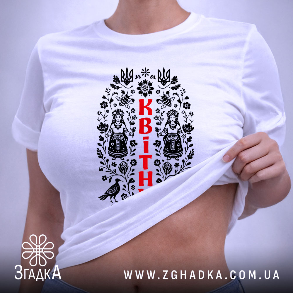 Футболка квітни з яскравим квітковим принтом – ідеальний вибір для любителів природи. Комфортна, стильна та універсальна для будь-якої нагоди.