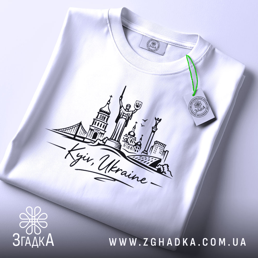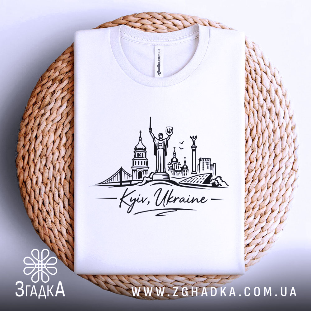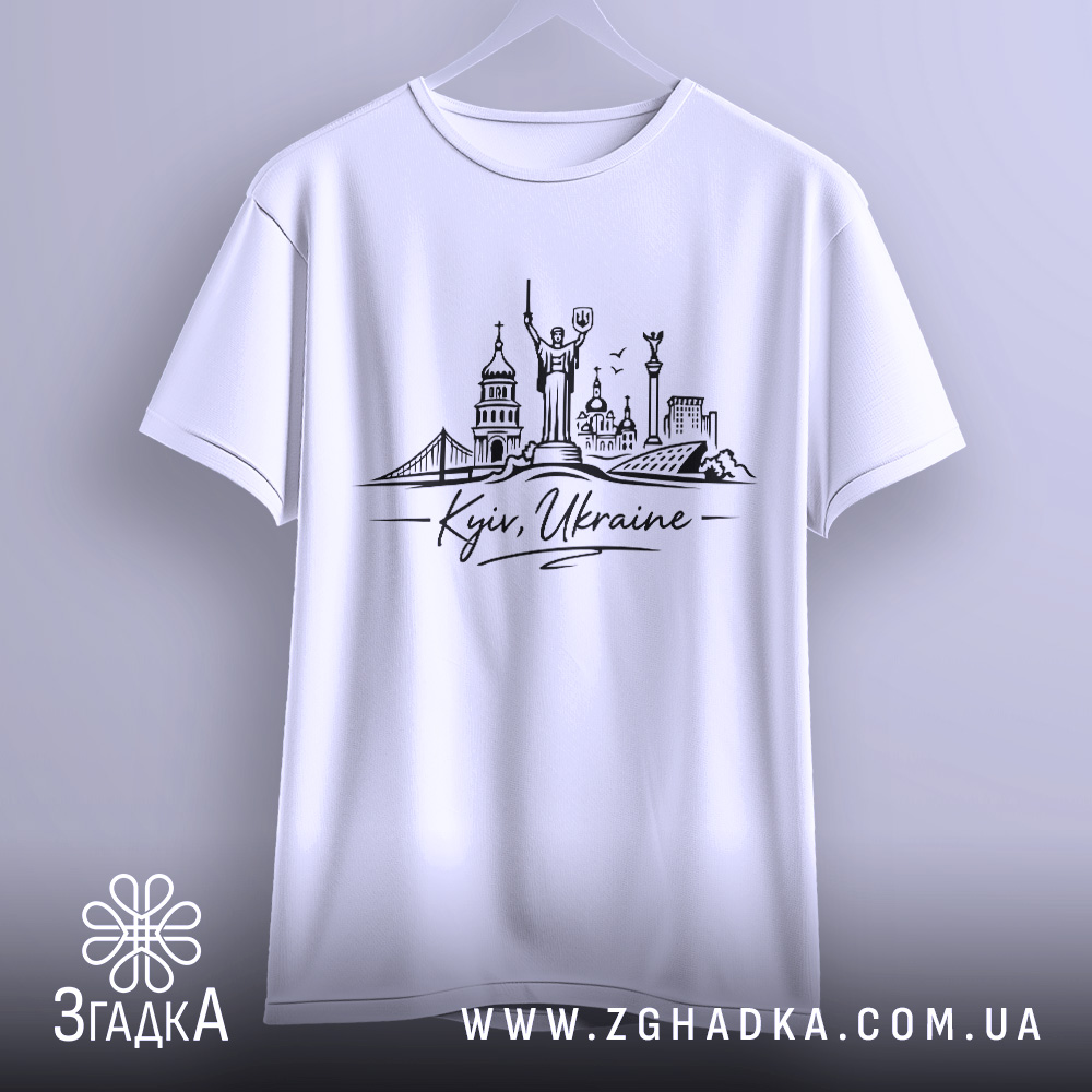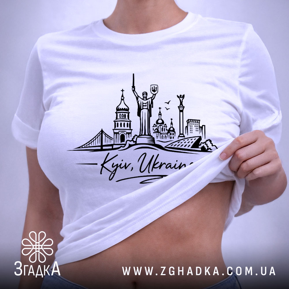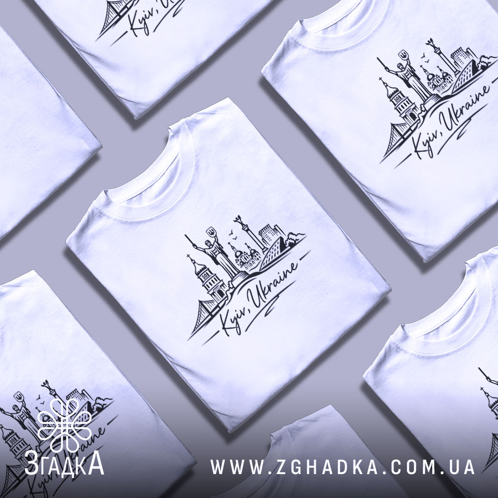 Стильна футболка з принтом Київ. Ідеальний вибір для любителів столиці та комфортного носіння.