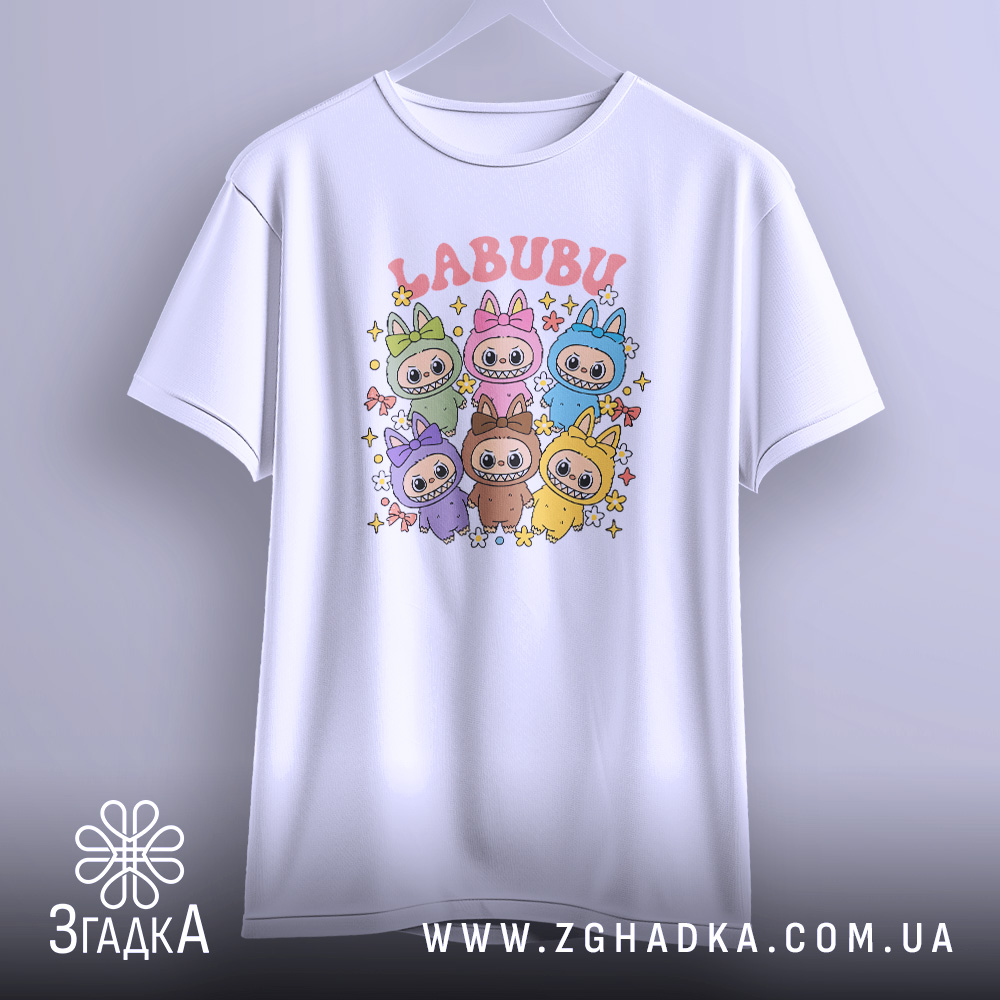 Футболка labubu – це не просто одяг, а вираження вашого стилю та настрою. Принт на футболці символізує креативність та позитив, що робить її ідеальним вибором для творчих особистостей.