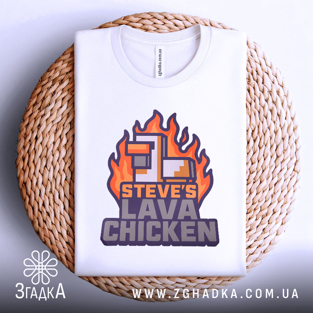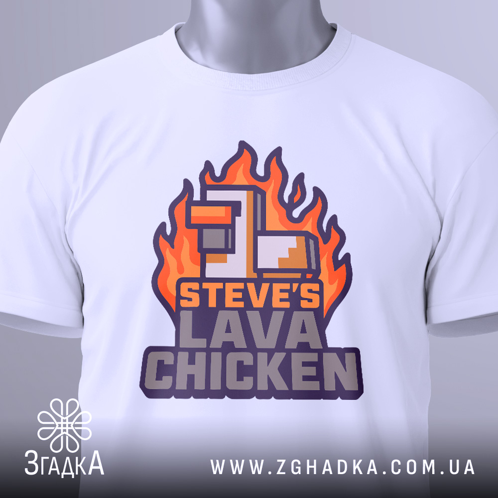 Ця футболка з принтом курки з лави Майкрафт стане чудовим доповненням вашого стилю. Принт символізує креативність та веселощі, які ви відчуваєте під час гри. Вона підходить для повсякденного носіння та спілкування з друзями.