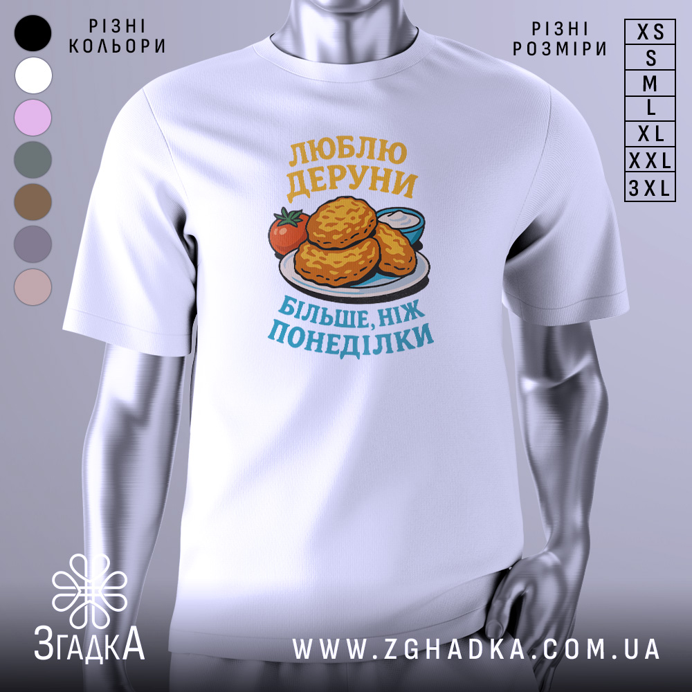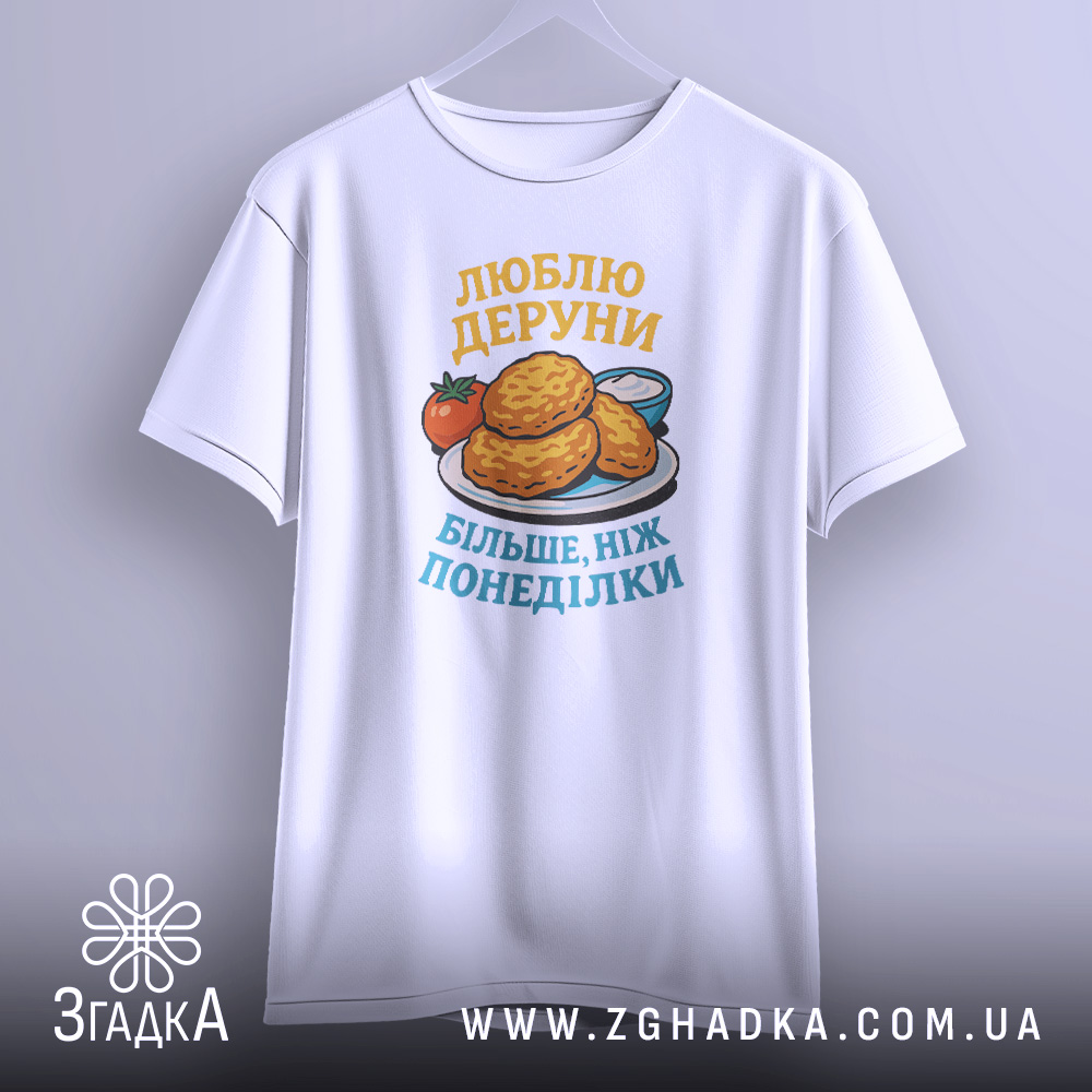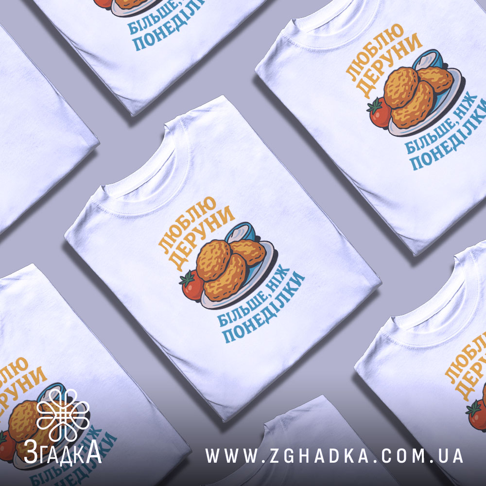 Ця футболка підходить для всіх, хто любить деруни, а також стане чудовим подарунком для кулінарів, шеф-кухарів, друзів на свята або просто для тих, хто цінує комфортний стиль.