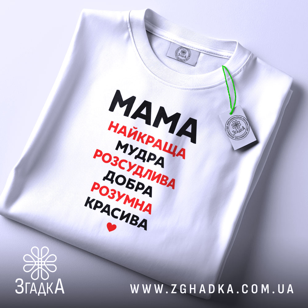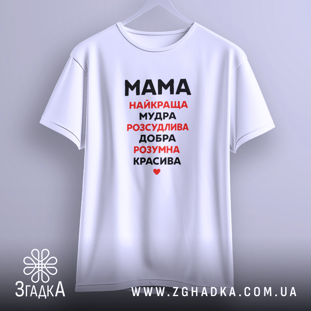 Ця футболка з принтом 'мама найкраща' відображає вашу любов та вдячність до мами. Стильний дизайн підкреслить вашу індивідуальність. Подаруйте цю футболку своїй мамі або собі!
