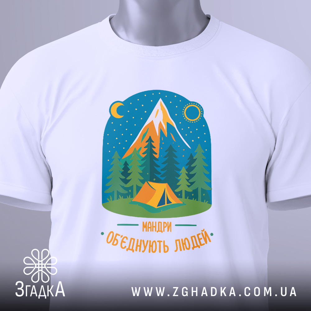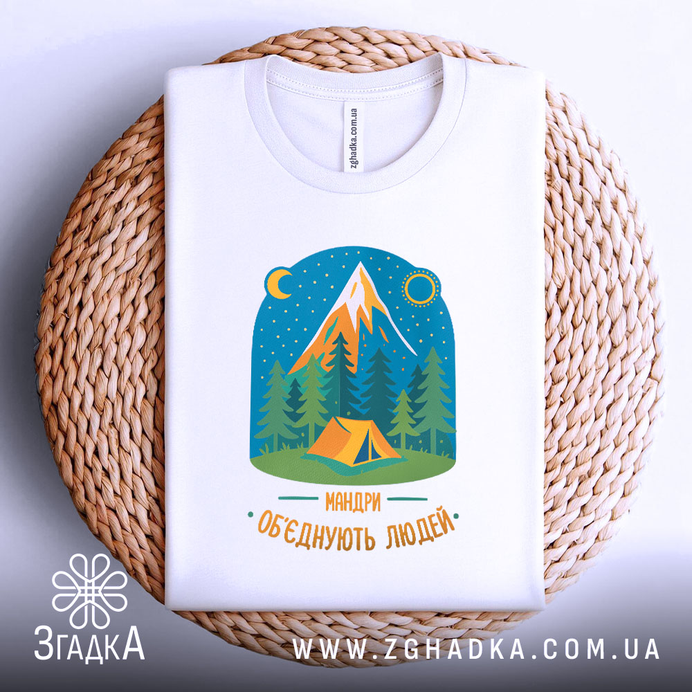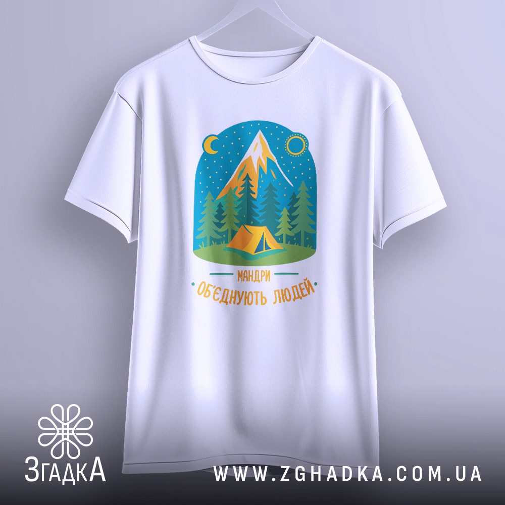 Футболка мандри обʼєднують – це не просто одяг, а вираження вашої любові до пригод. Принт на футболці нагадує про те, як важливо обʼєднуватися з іншими через спільні мандрівки та досвід.