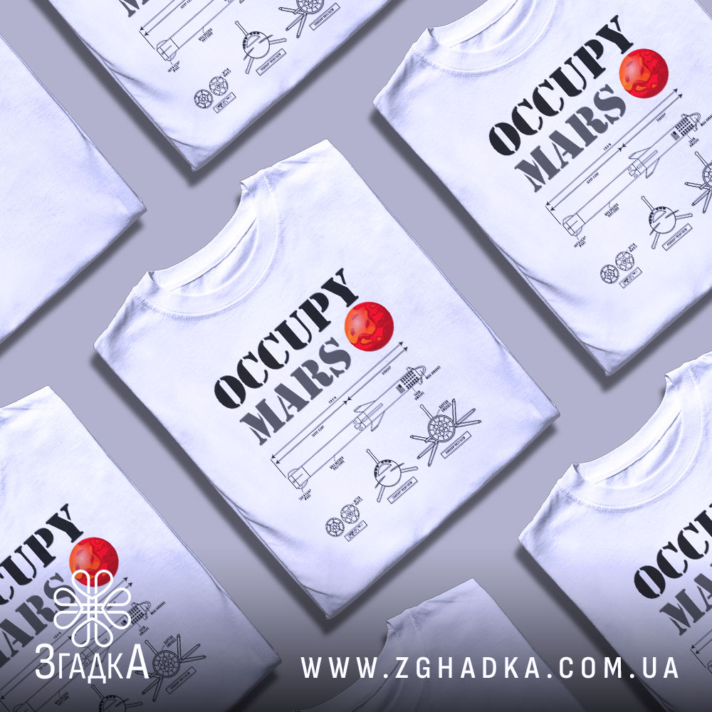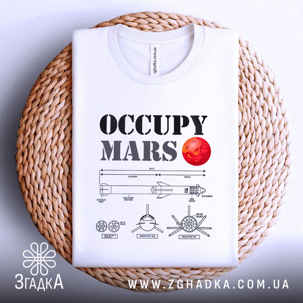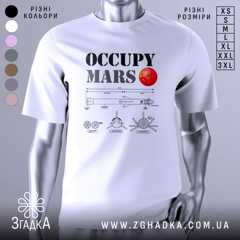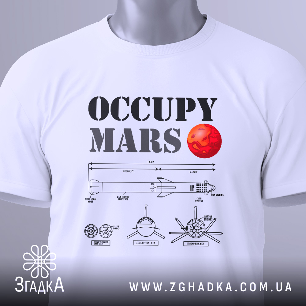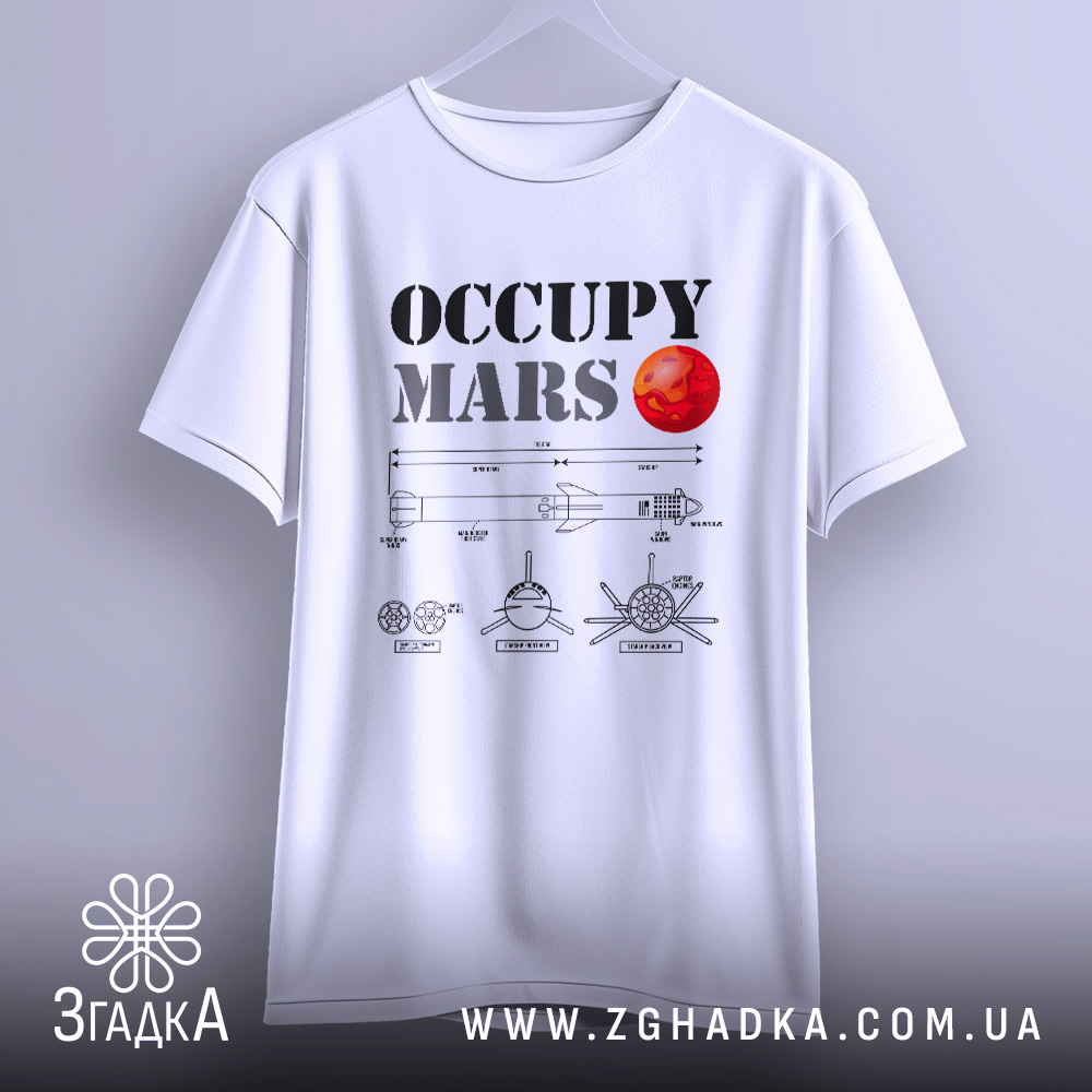 Футболка з унікальним принтом, що символізує колонізацію Марса. Ідеальний вибір для любителів космосу та стилю.