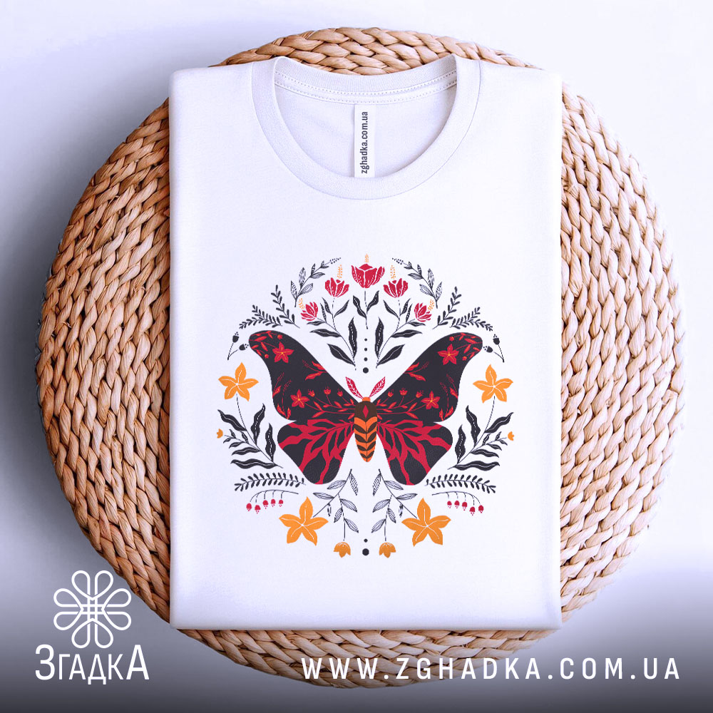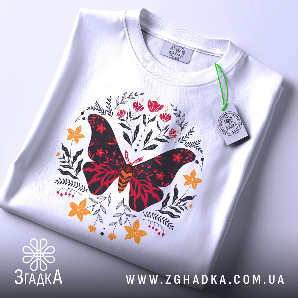 Футболка метелик квіти – це не просто одяг, це вираження вашої індивідуальності. Принт з метеликом та квітами нагадує про легкість і радість, що приносить природа. Вона стане чудовим доповненням до вашого повсякденного стилю.