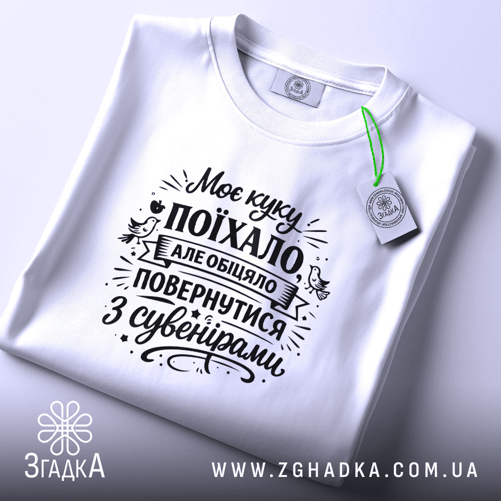 Ця футболка виготовлена з високоякісних матеріалів та має унікальний принт, який підкреслює вашу індивідуальність. Напис ‘Моє куку поїхало’ символізує легкість та позитивний настрій, що робить її ідеальним вибором для повсякденного носіння.