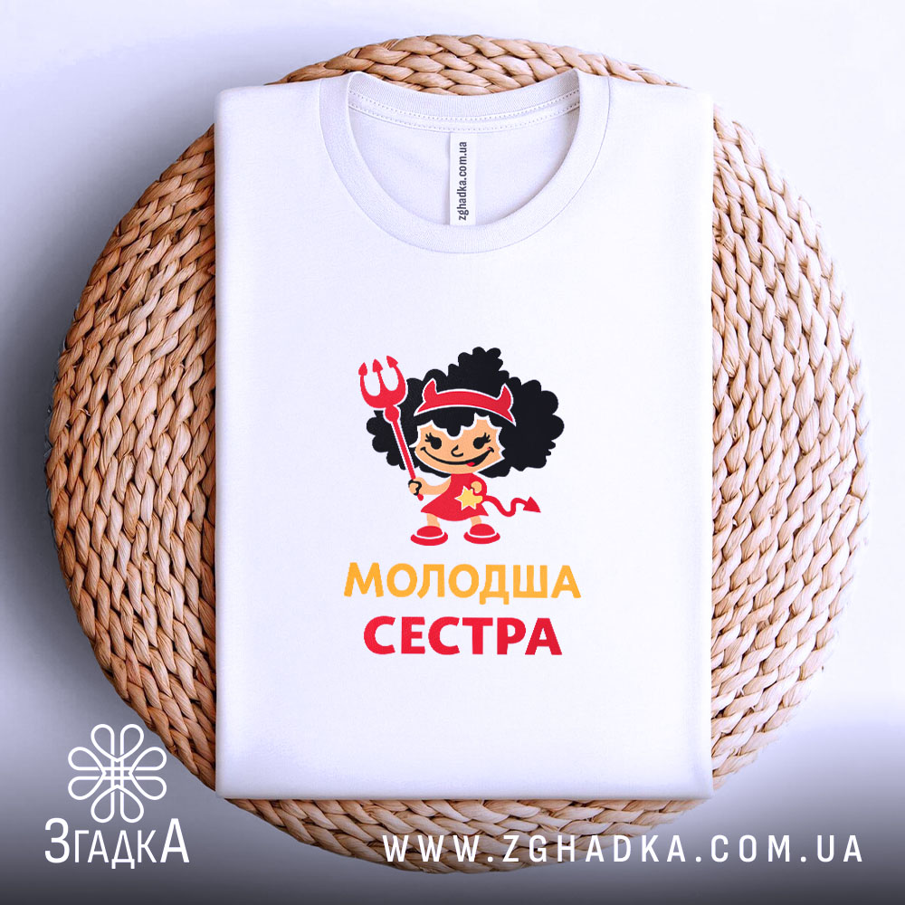 Футболка молодша сестра – це стильний та зручний одяг для щоденного носіння. Вона стане чудовим подарунком для вашої молодшої сестри.