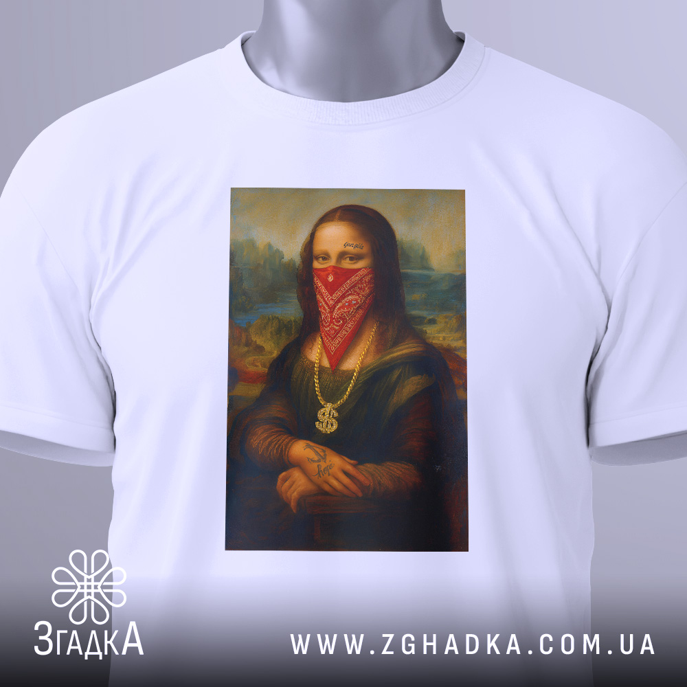 Футболка Мона Ліза – це стильний одяг з унікальним принтом. Ідеальний вибір для любителів мистецтва.