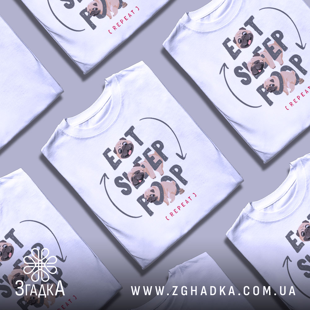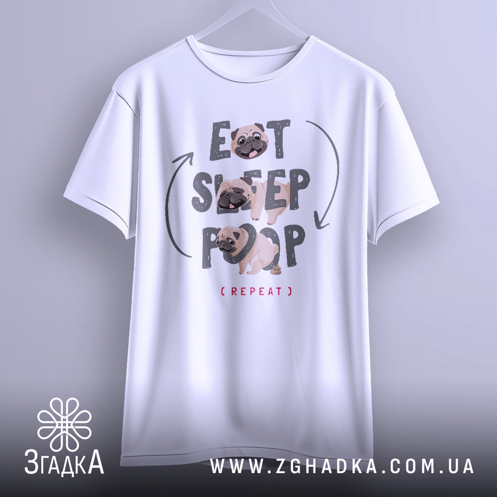 Футболка мопс ритуал — їсть, спить і робить ваш день
