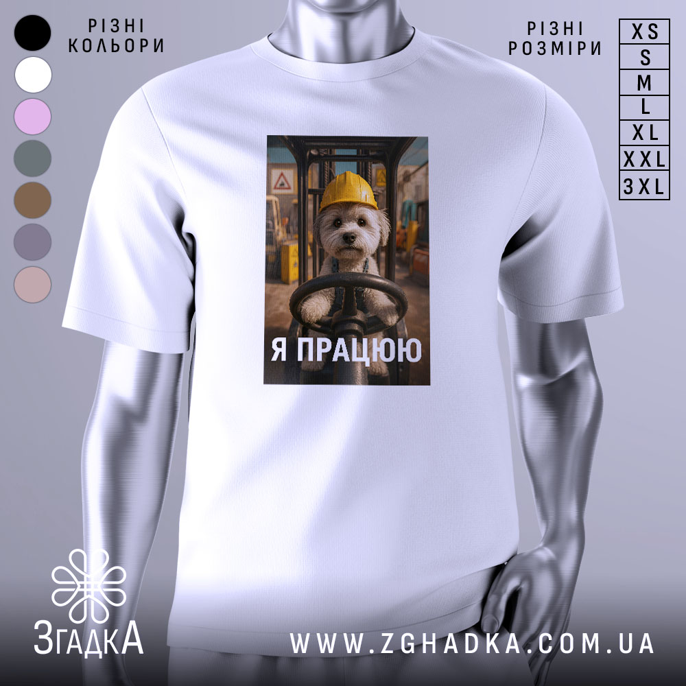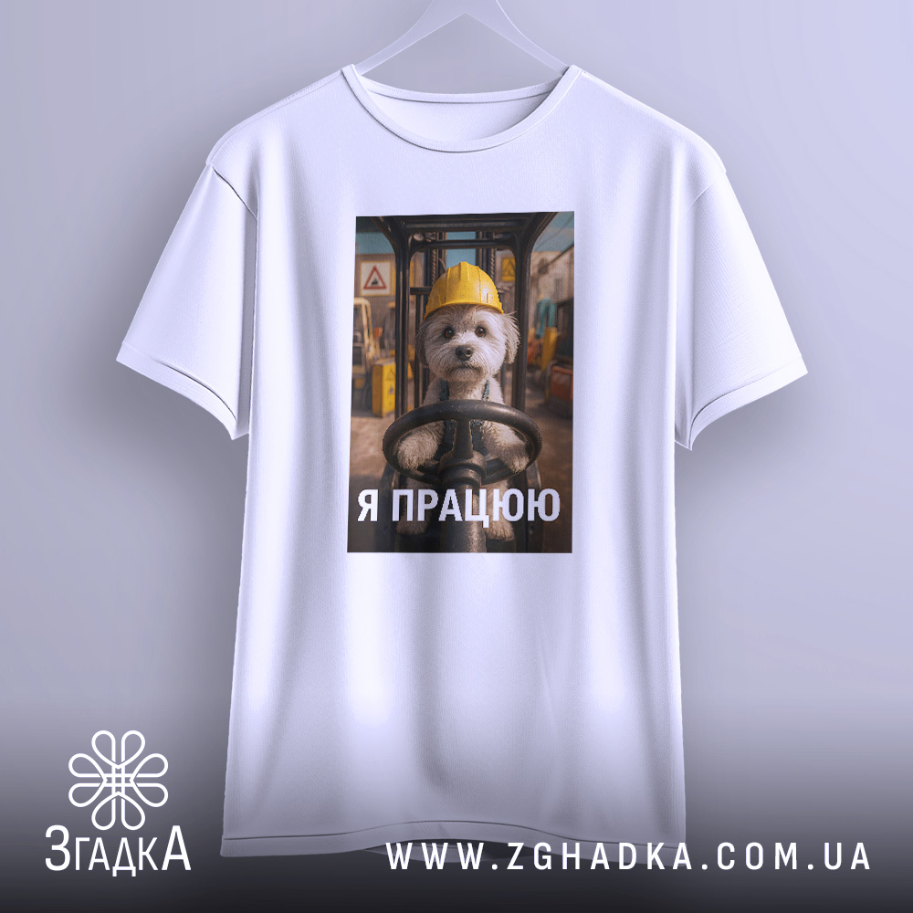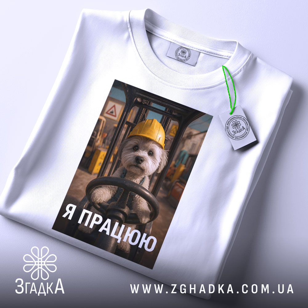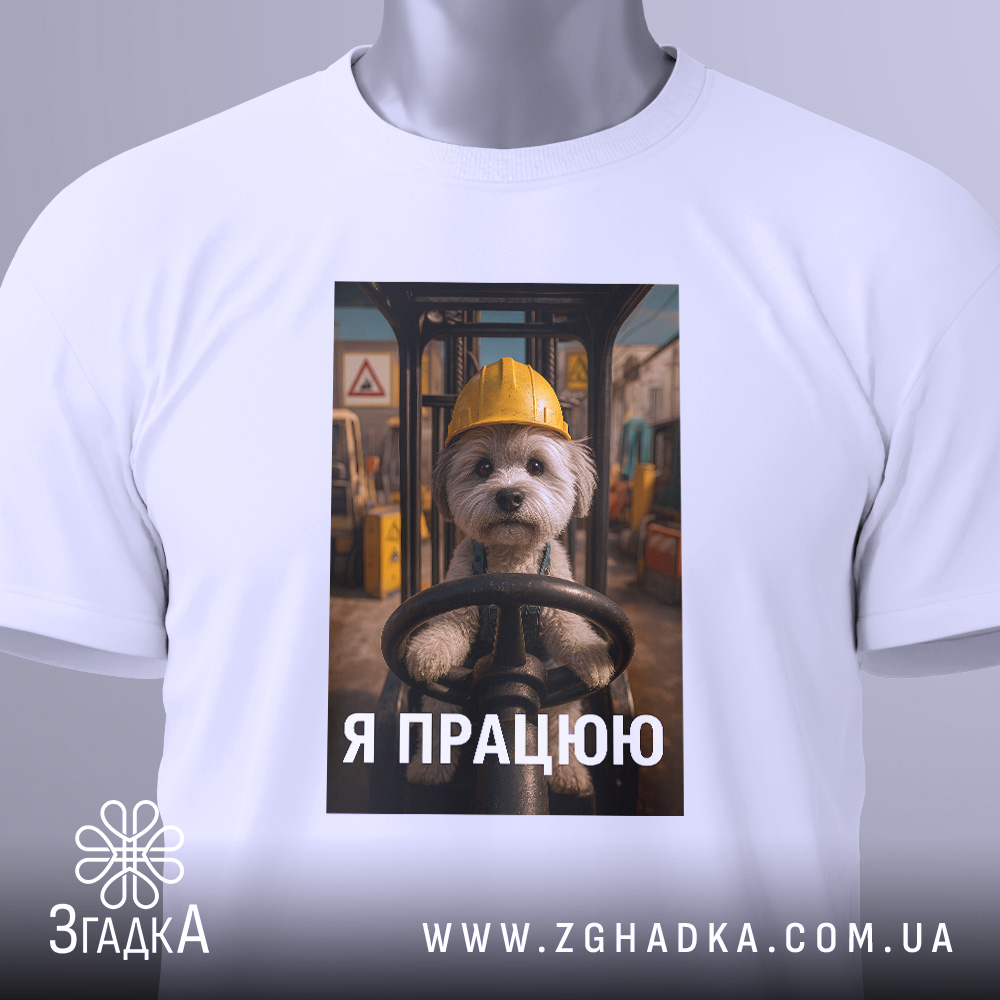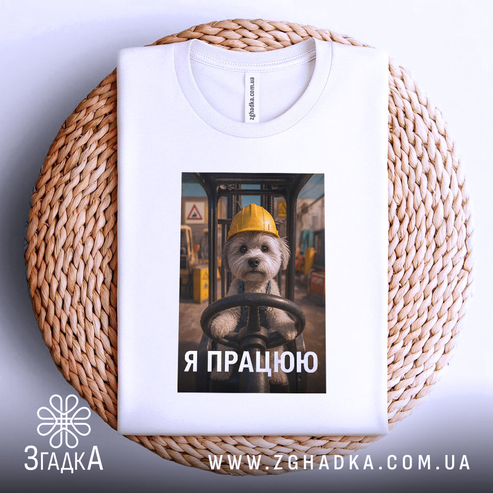 Футболка мила робота: пес керує технікою на складі