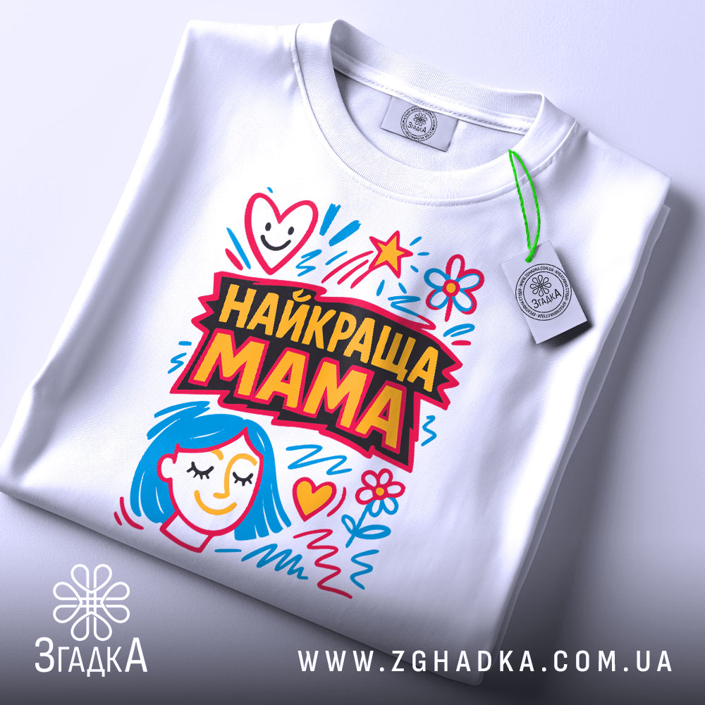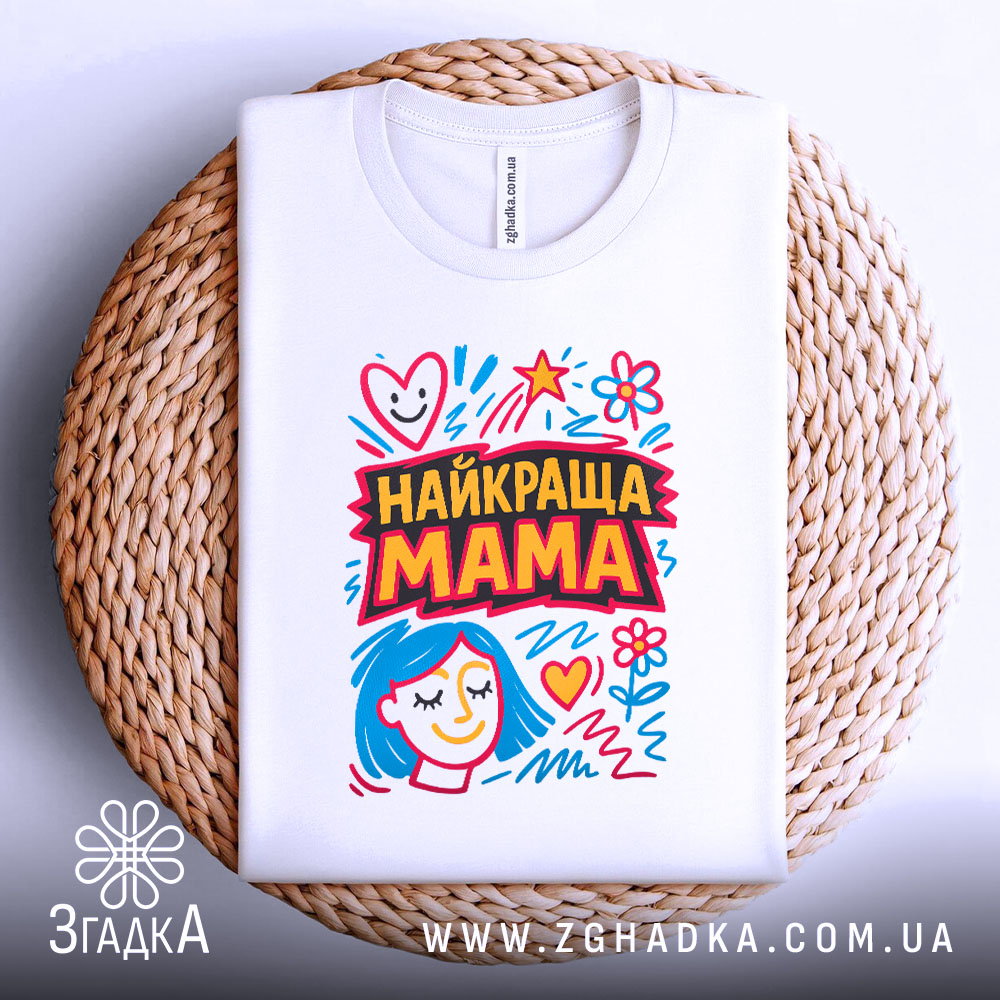 Футболка ‘Найкраща мама’ виготовлена з високоякісних матеріалів, що забезпечують комфорт і стиль. Принт символізує безмежну любов і підтримку, яку мама дарує щодня.