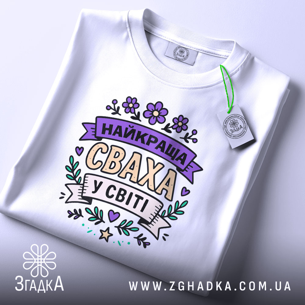 Ця футболка – справжній маст-хев для всіх, хто цінує комфорт і стиль. Принт з фразою ‘найкраща сваха’ підкреслює вашу індивідуальність і почуття гумору. Вона стане чудовим доповненням до вашого гардеробу.