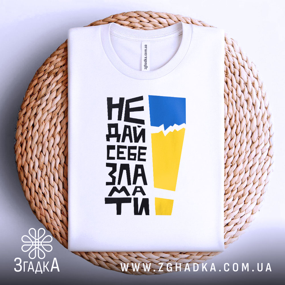 Футболка не дай себе зламати – це не просто одяг, а стильний аксесуар, що надихає на досягнення нових вершин. Оберіть свою футболку та відчуйте силу позитивного настрою.