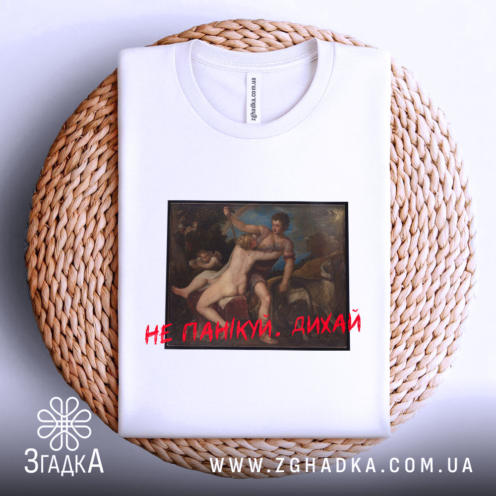 Футболка Не панікуй дихай — мистецтво з іронією