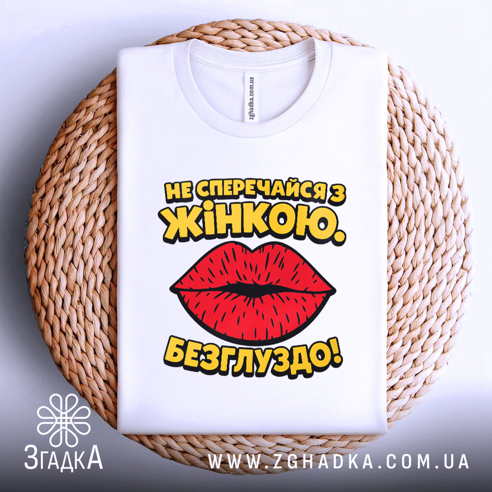 Ця футболка – ідеальний вибір для тих, хто цінує комфорт і стиль. Принт з фразою ‘не сперечайся’ підкреслює вашу життєрадісність і позитивний настрій. Вона стане чудовим доповненням до вашого гардеробу.