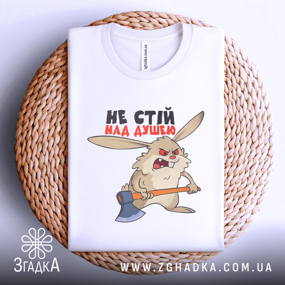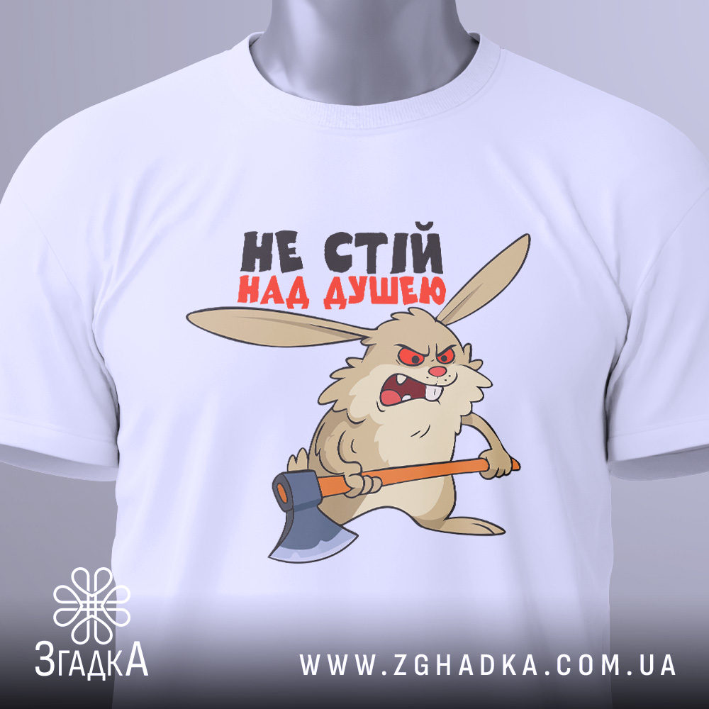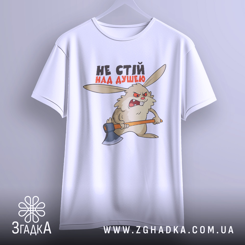 Футболка не стій над душею – це стильний та комфортний вибір для тих, хто хоче виділитися з натовпу. Не пропустіть можливість додати цю унікальну річ до свого гардеробу!