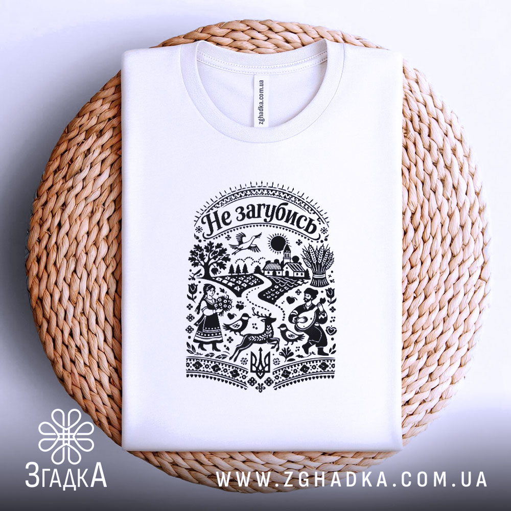 Футболка Не загубись — глибокий зміст у народному стилі