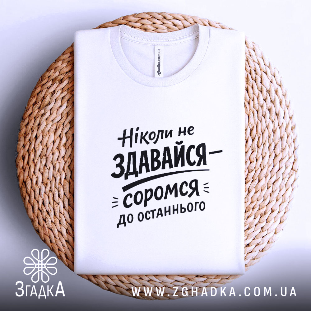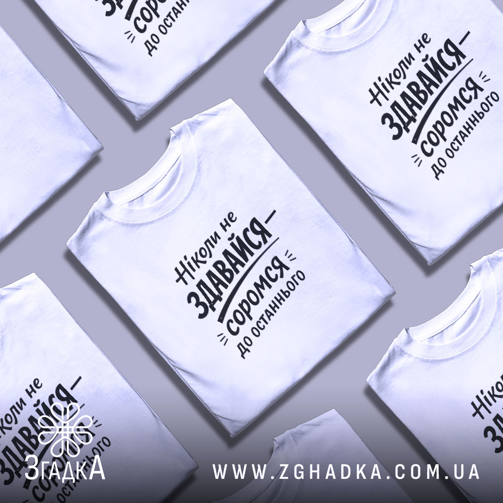 Футболка ‘Ніколи не здавайся’ – це не просто одяг, а символ вашої рішучості та стилю. Обирайте якість і комфорт, замовляйте вже сьогодні!
