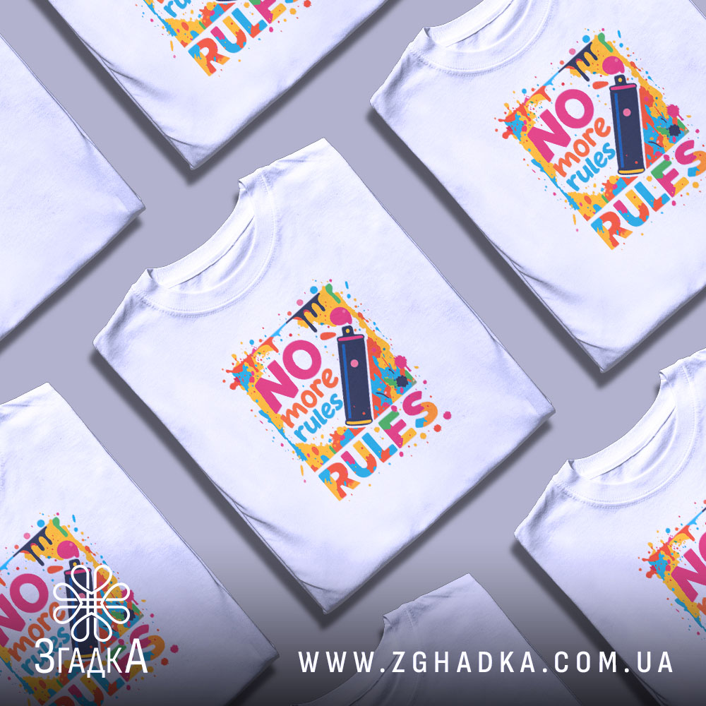 Футболка No more rules – це не просто одяг, а вираження вашої особистості. Оберіть свій стиль та будьте вільними у своїх виборах.