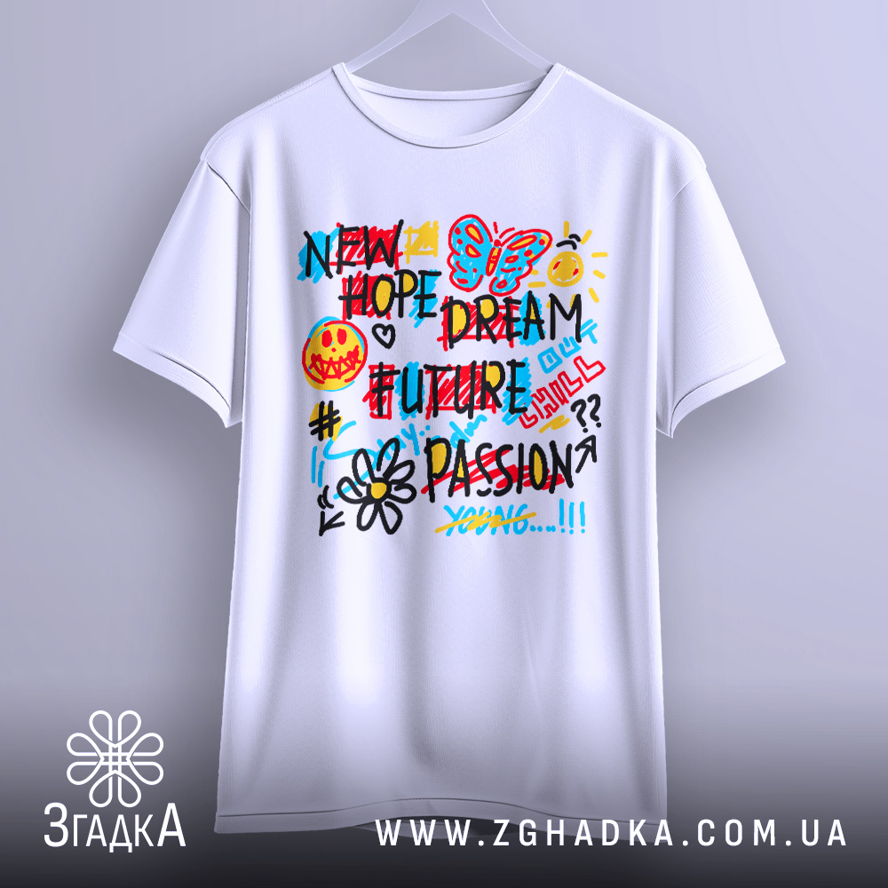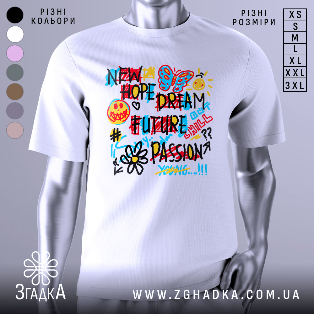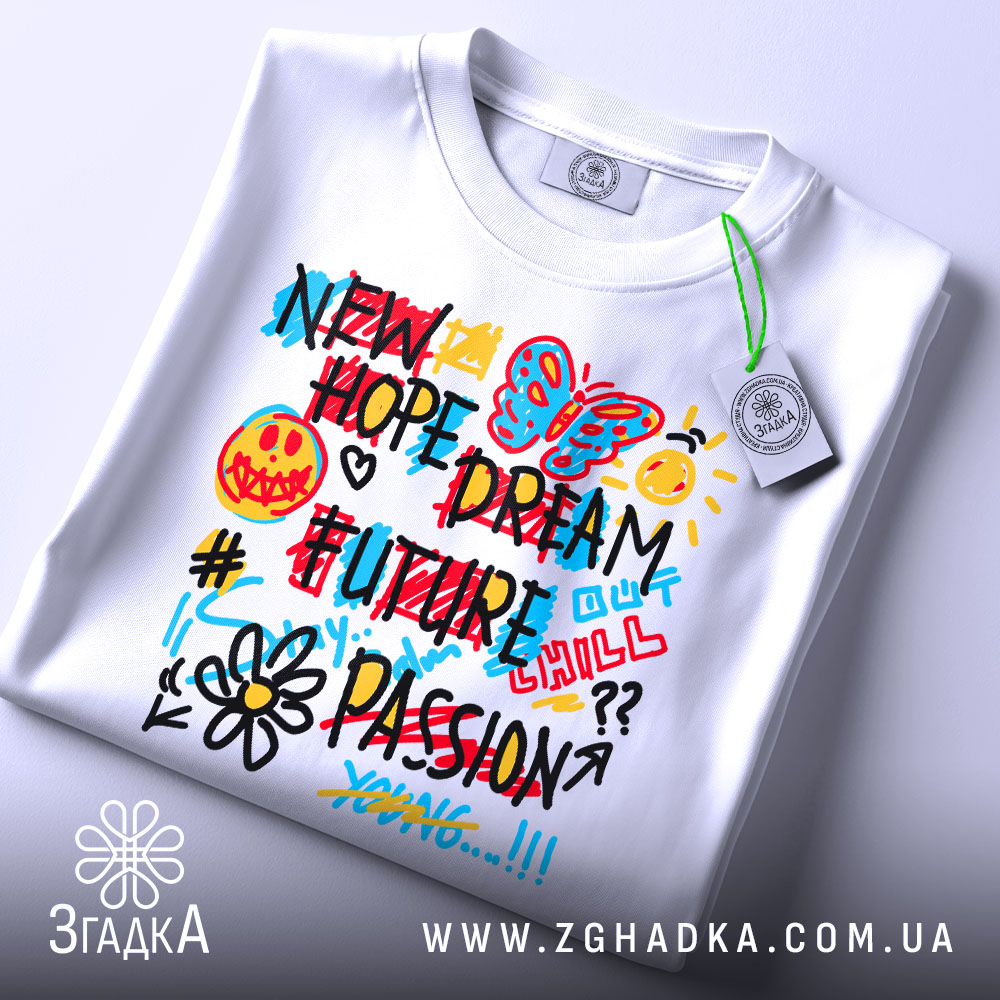 Футболка нові мрії графіті – це яскравий акцент у вашому гардеробі. Вона поєднує стиль, комфорт та якість.