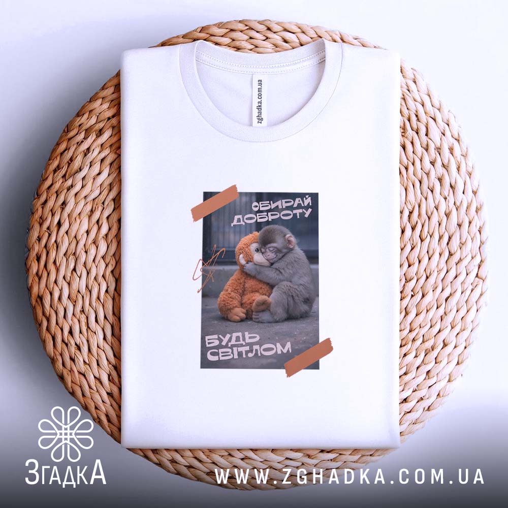 На принті футболки зображено заклик до доброти, що надихає та піднімає настрій. Вибирай доброту щодня!