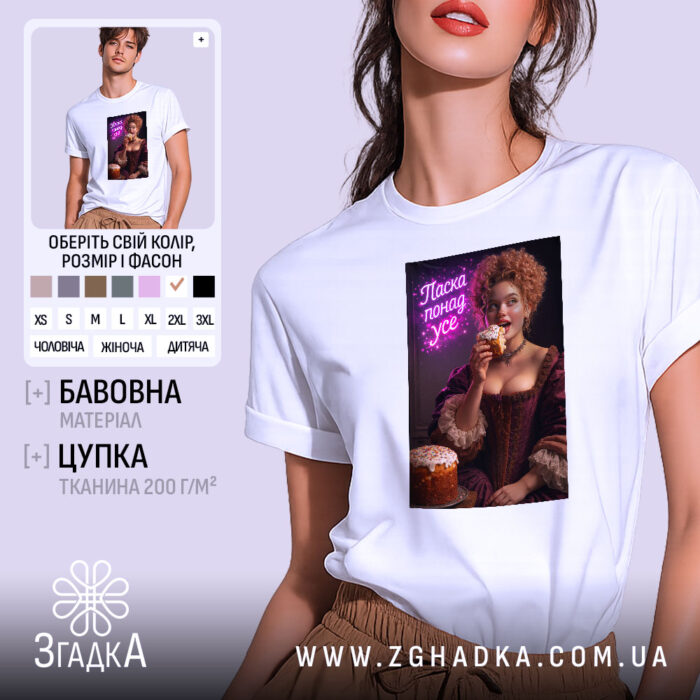 Футболка паска понад усе великодній стиль – це ідеальний вибір для тих, хто цінує комфорт і оригінальний дизайн.