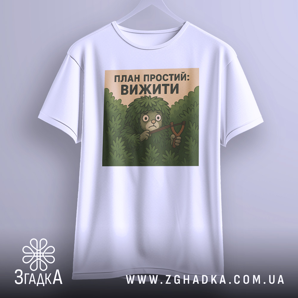 Футболка з принтом ‘План: просто вижити’ стане чудовим доповненням до вашого гардеробу. Висока якість та стильний дизайн роблять її ідеальним вибором.