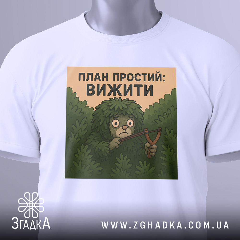 Футболка з принтом ‘План: просто вижити’ – це не лише стильний елемент гардеробу, а й спосіб висловити свій настрій. Обирайте якість та комфорт, замовляючи цю унікальну футболку.