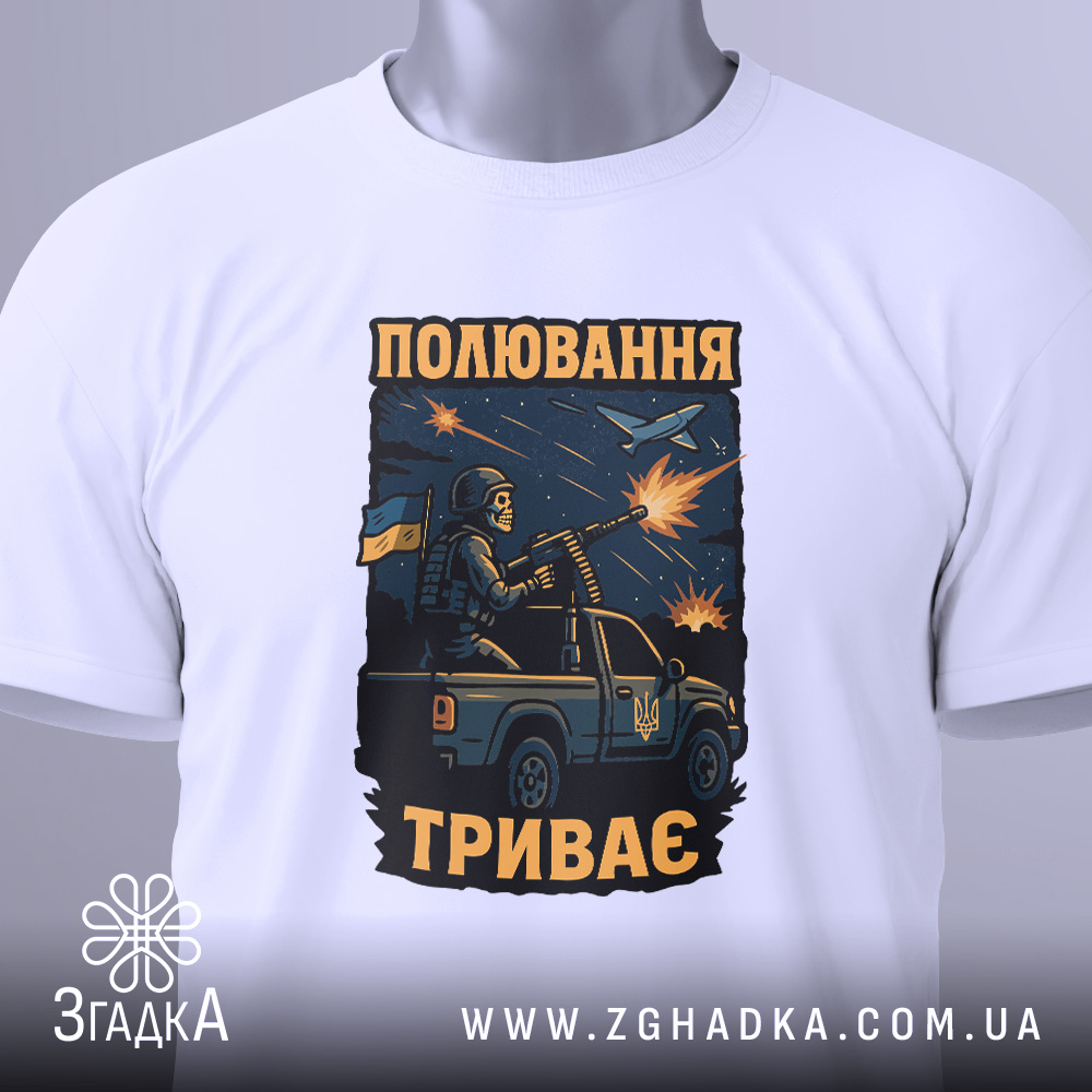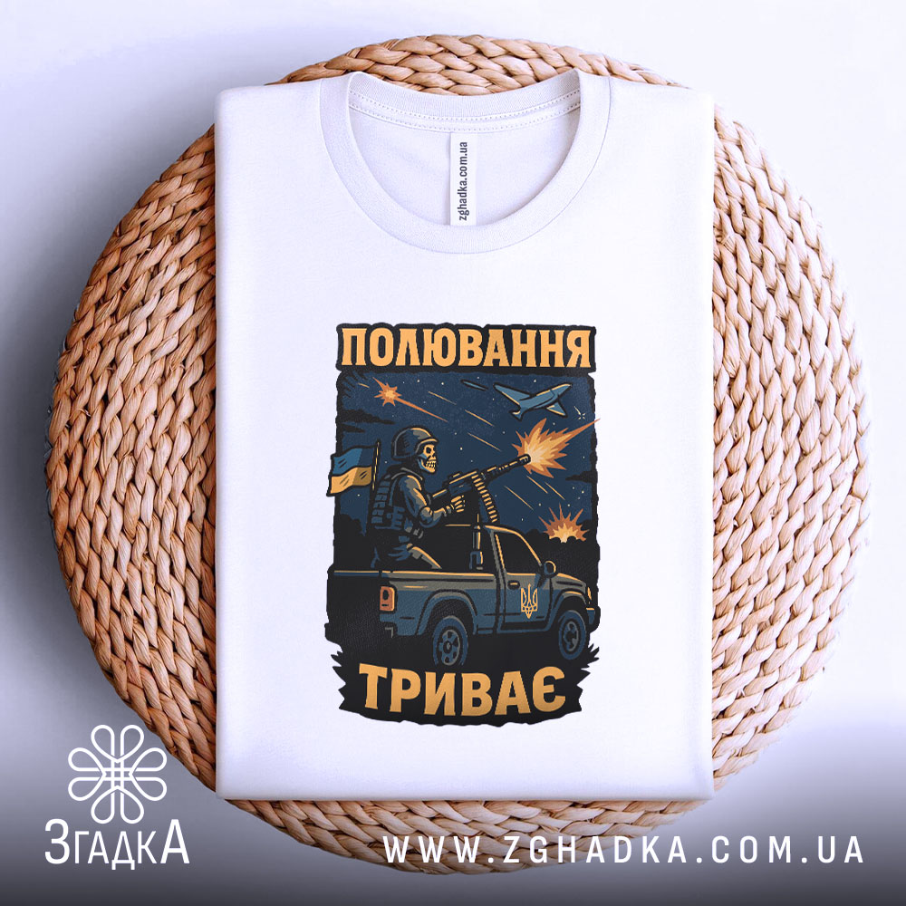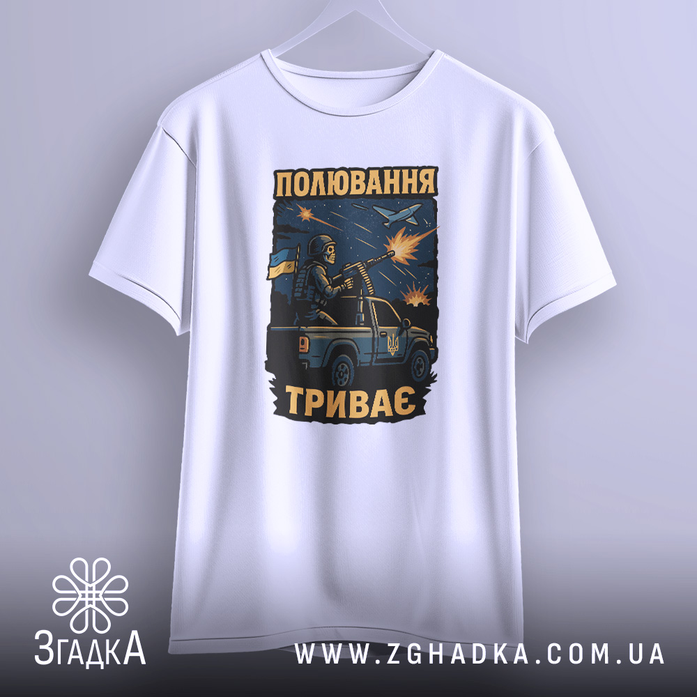 Футболка полювання триває — це ідеальний вибір для тих, хто цінує стиль, комфорт і якість. Не пропустіть можливість додати цю унікальну річ до свого гардеробу.