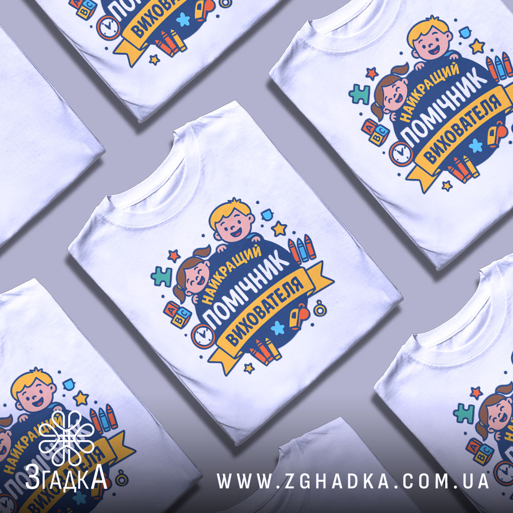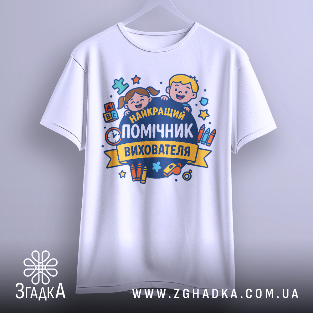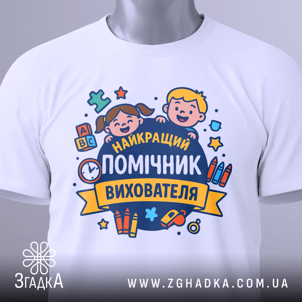 Футболка помічник вихователя — усміхнені діти та тепло садка