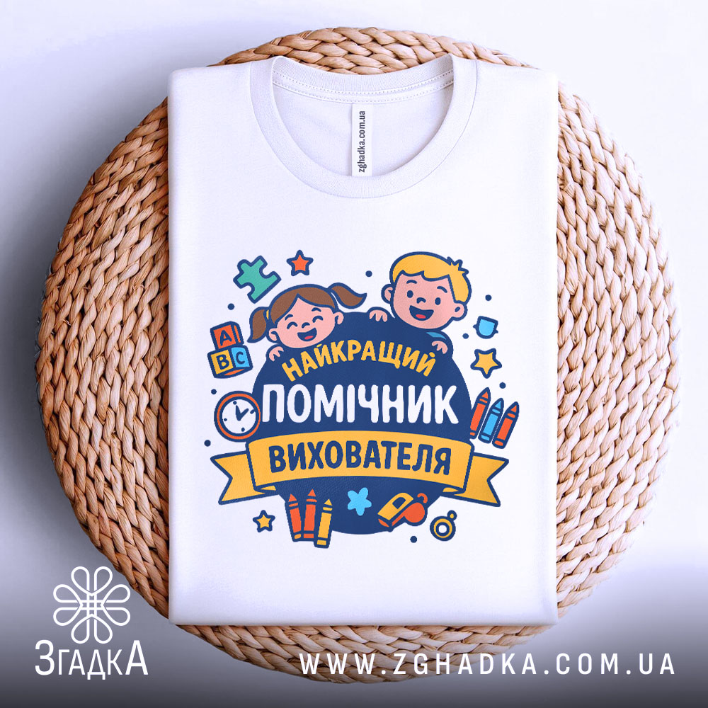 Футболка помічник вихователя – це стильний одяг для підтримки вихователів. Виготовлена з якісних матеріалів, вона забезпечує комфорт та довговічність.