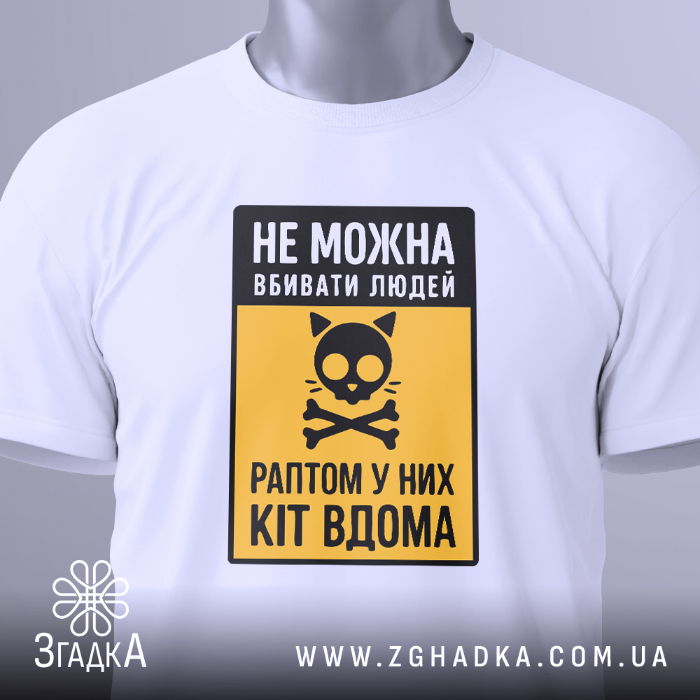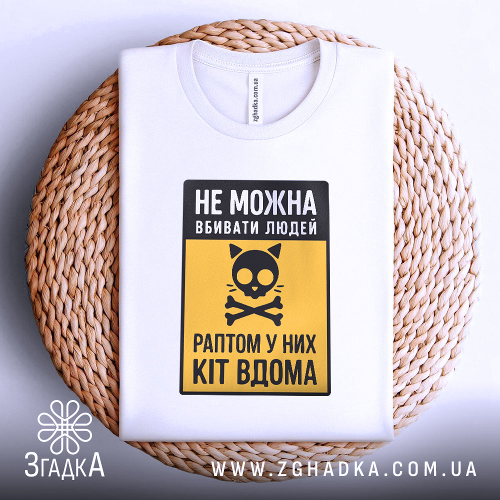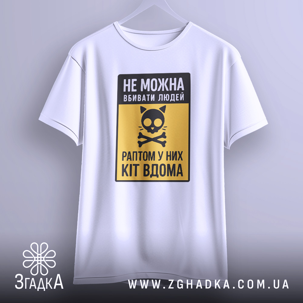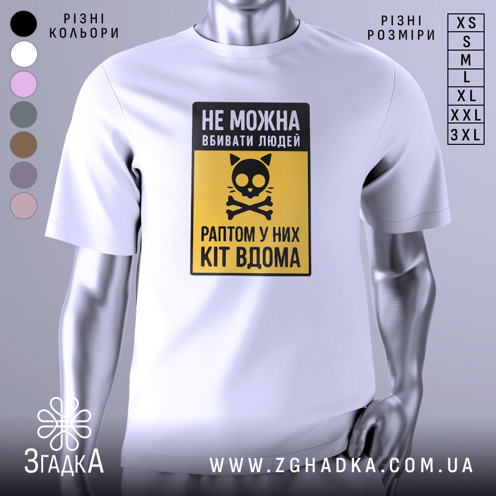 Футболка з принтом попередження про кота – ідеальний вибір для любителів пухнастиків. Стильна, комфортна та практична.