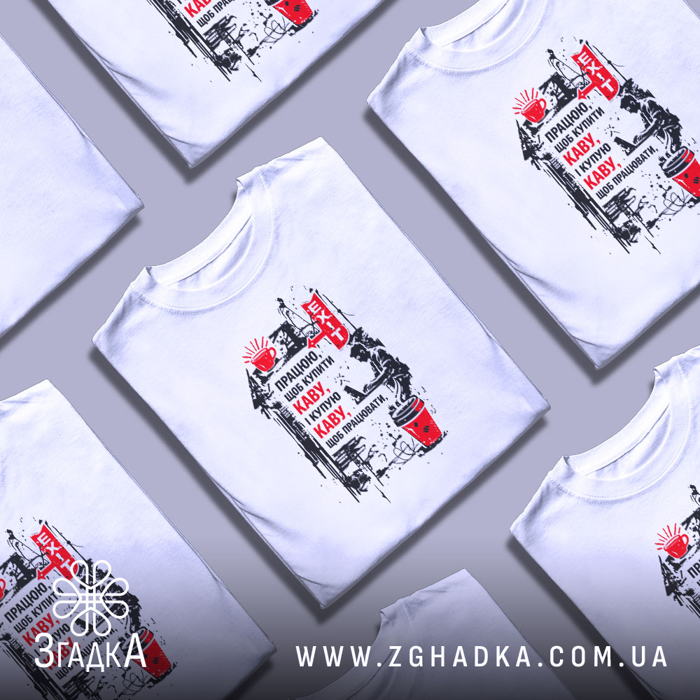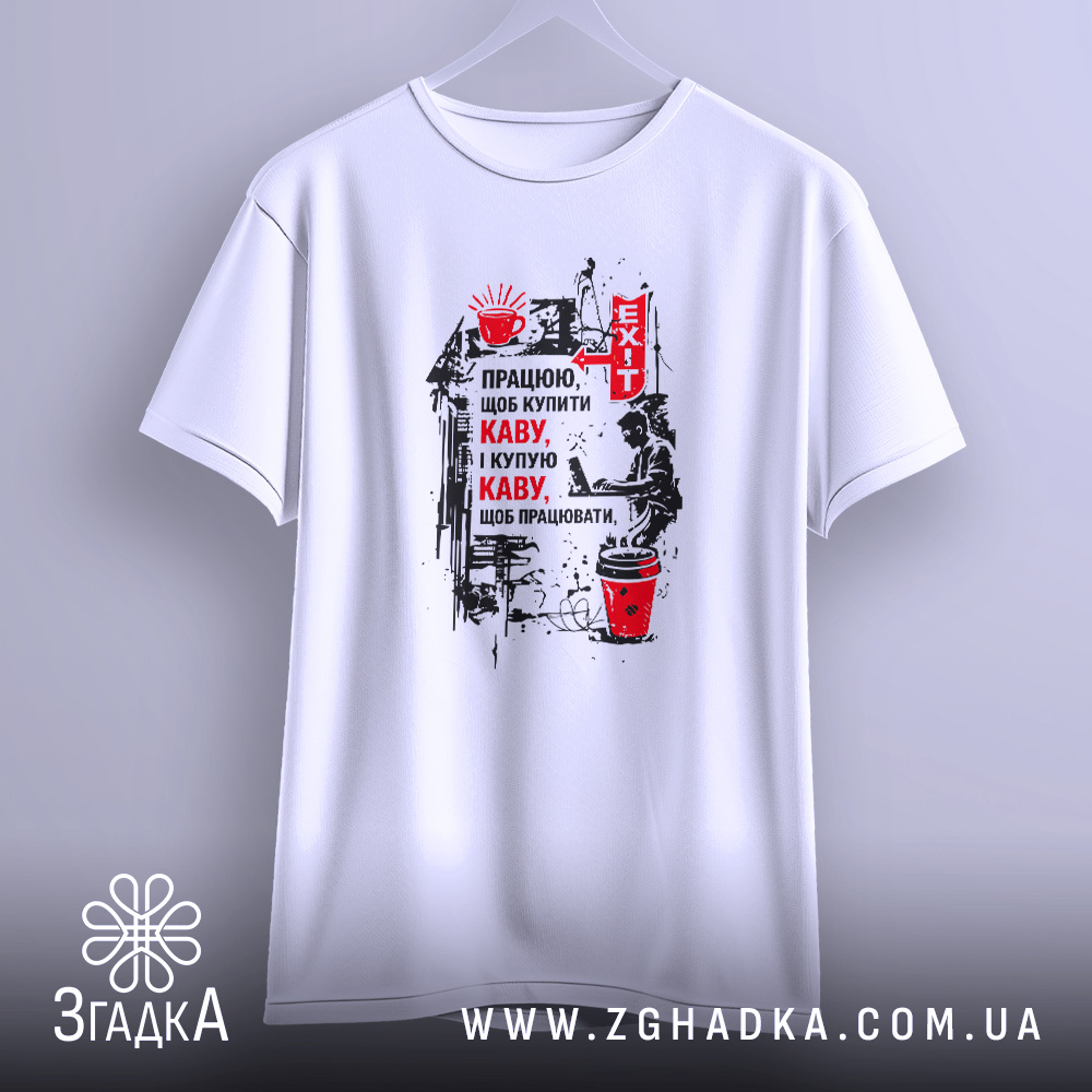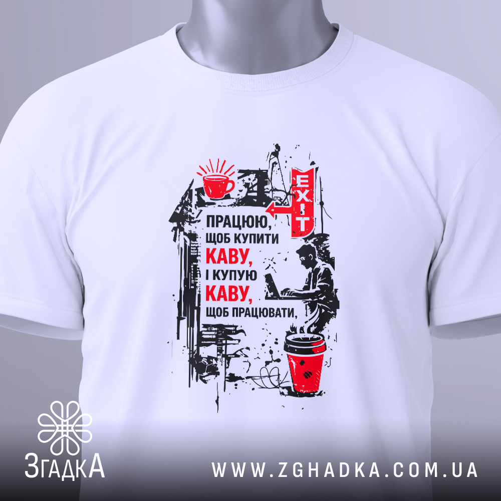 Футболка з написом ‘працюю за каву’ стане чудовим доповненням до вашого гардеробу. Вона підкреслить вашу пристрасть до кави та стиль життя.