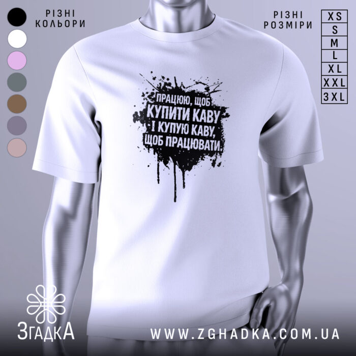 Футболка працюю за каву – це не просто одяг, а вираження вашої особистості та пристрасті до кави. Обирайте стиль та комфорт разом з нами!