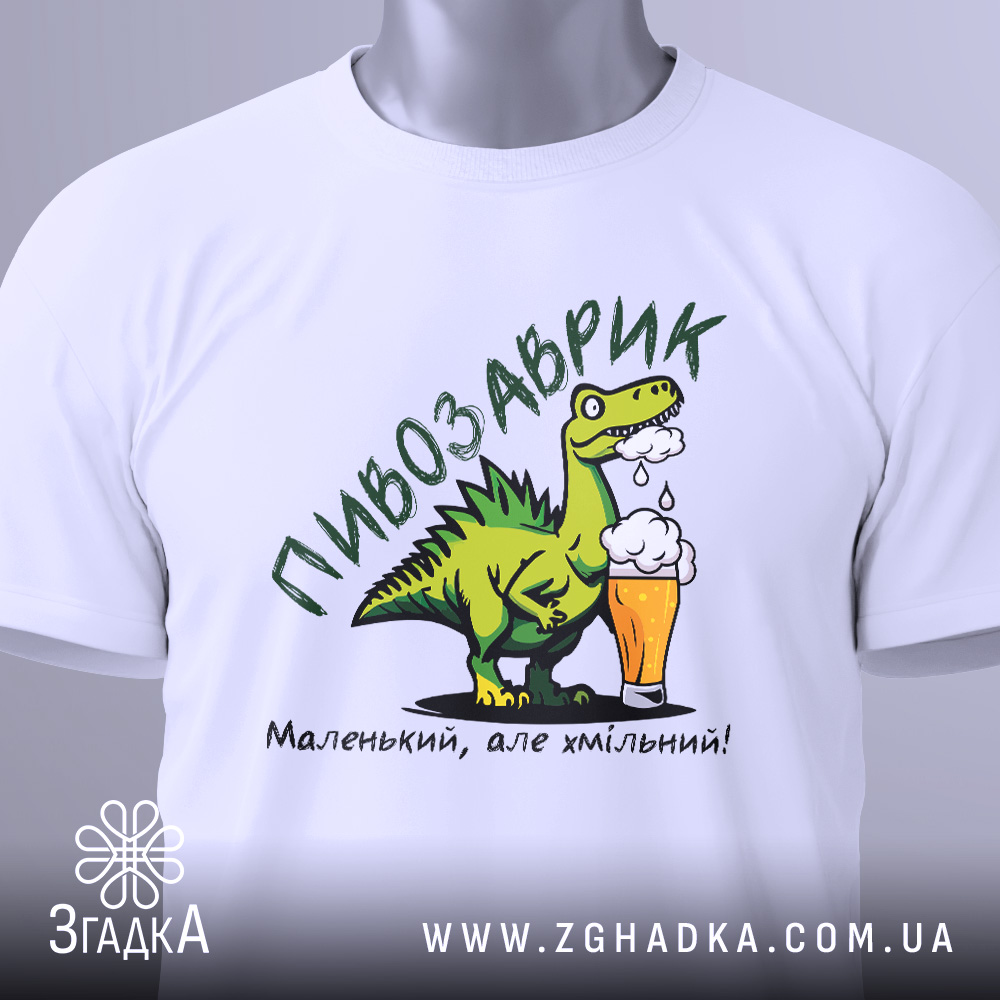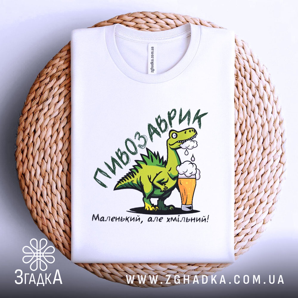 Футболка пивозаврик з веселим принтом стане чудовим доповненням до вашого гардеробу. Вона підходить для будь-якої нагоди та забезпечує комфорт.