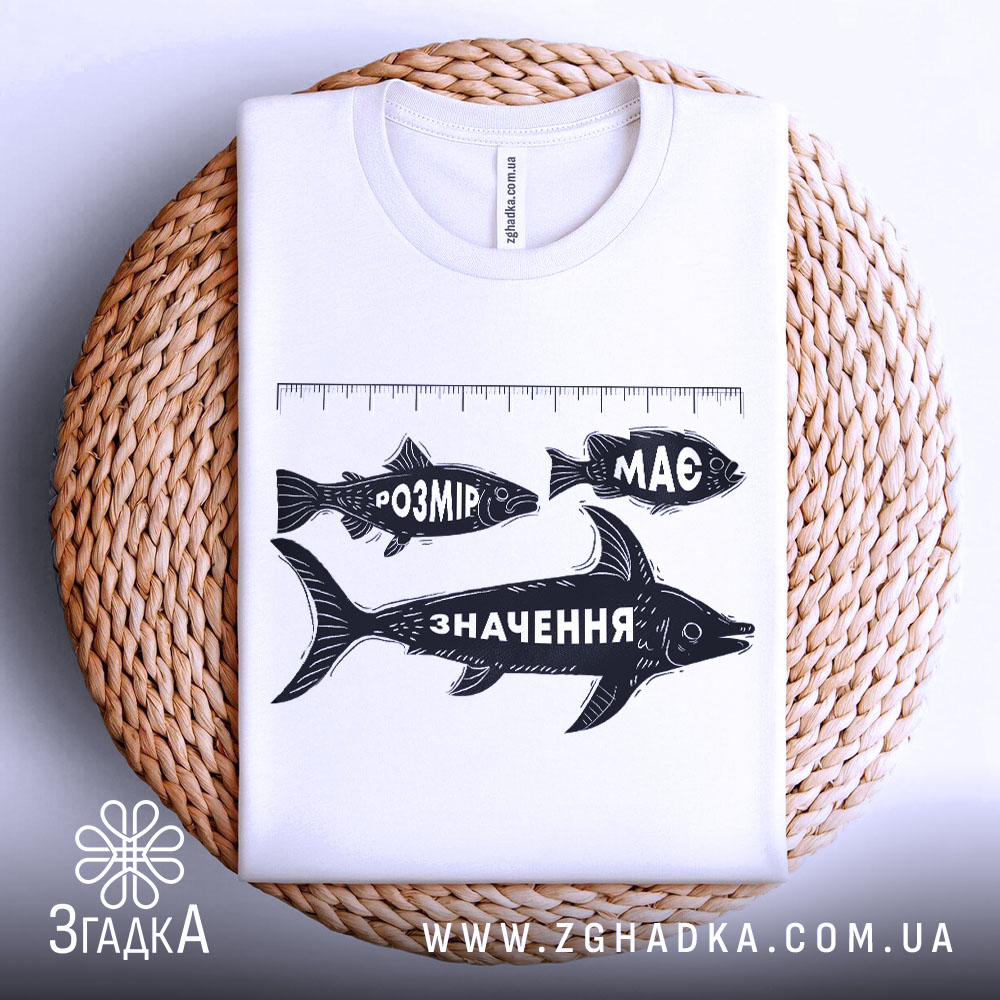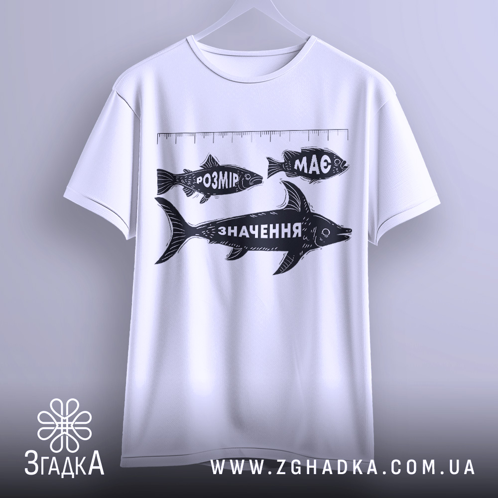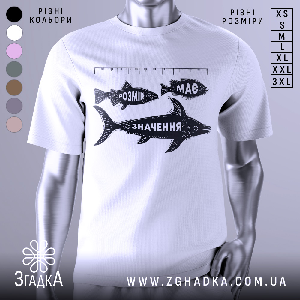 Ця футболка виготовлена з якісних матеріалів, що забезпечують комфорт під час носіння. Принт на футболці говорить про те, що розмір дійсно має значення, адже правильно підібраний одяг підкреслює вашу індивідуальність.