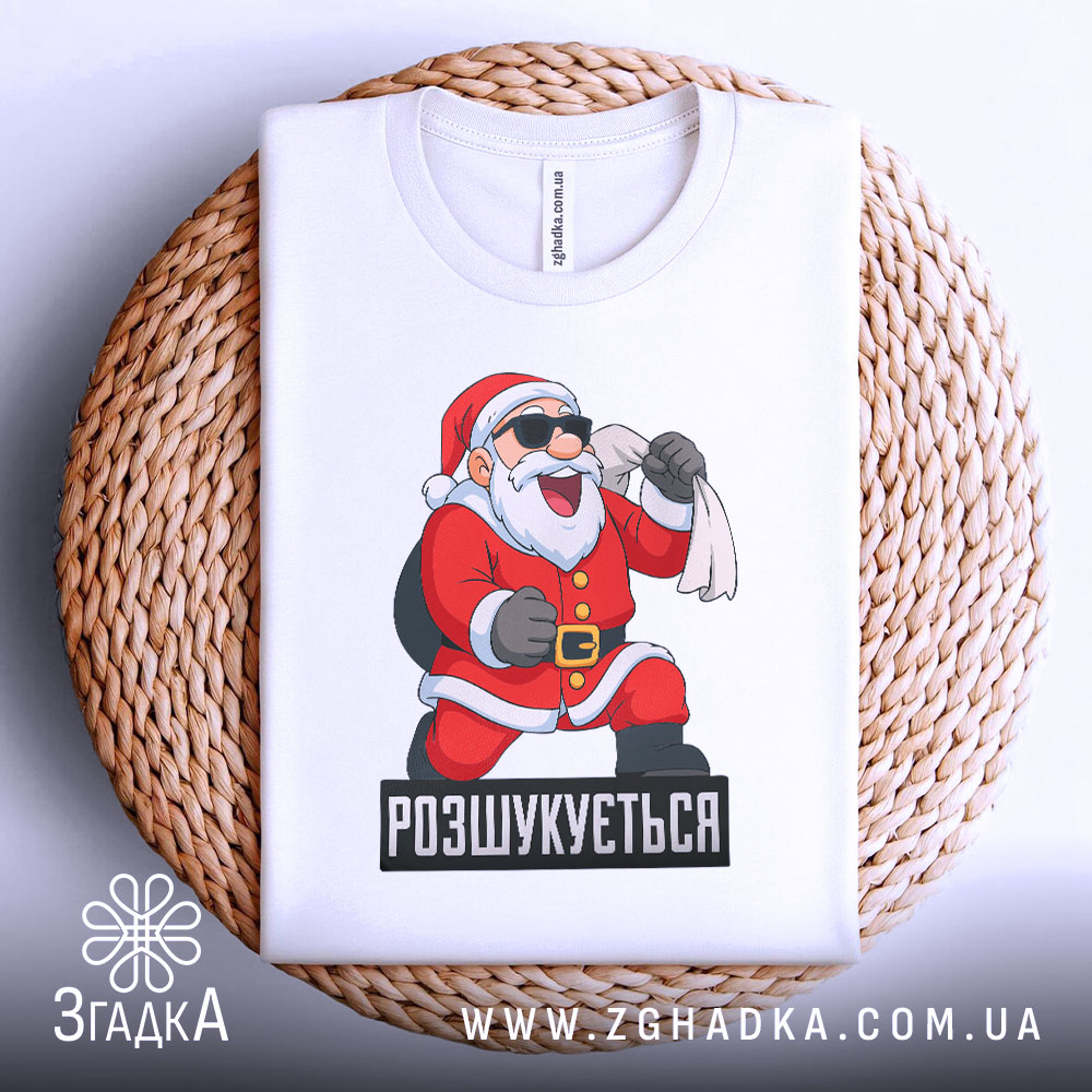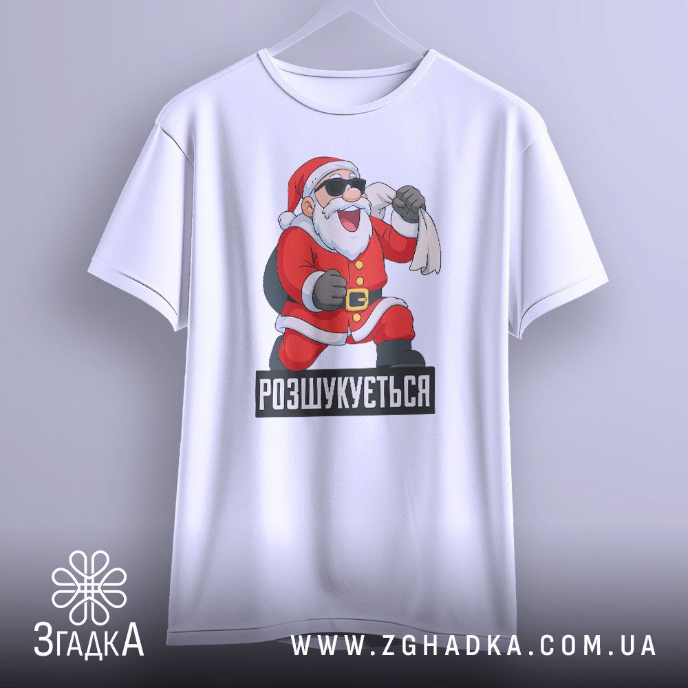 Футболка розшукується Санта – це стильний та веселий вибір для свят. Вона підходить для всіх, хто любить святковий настрій.