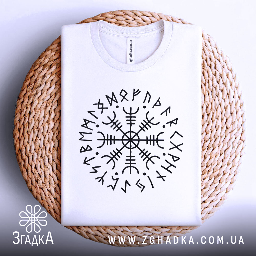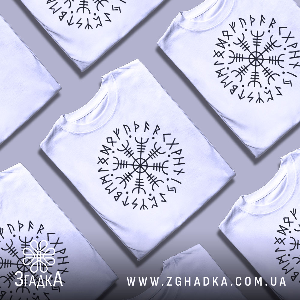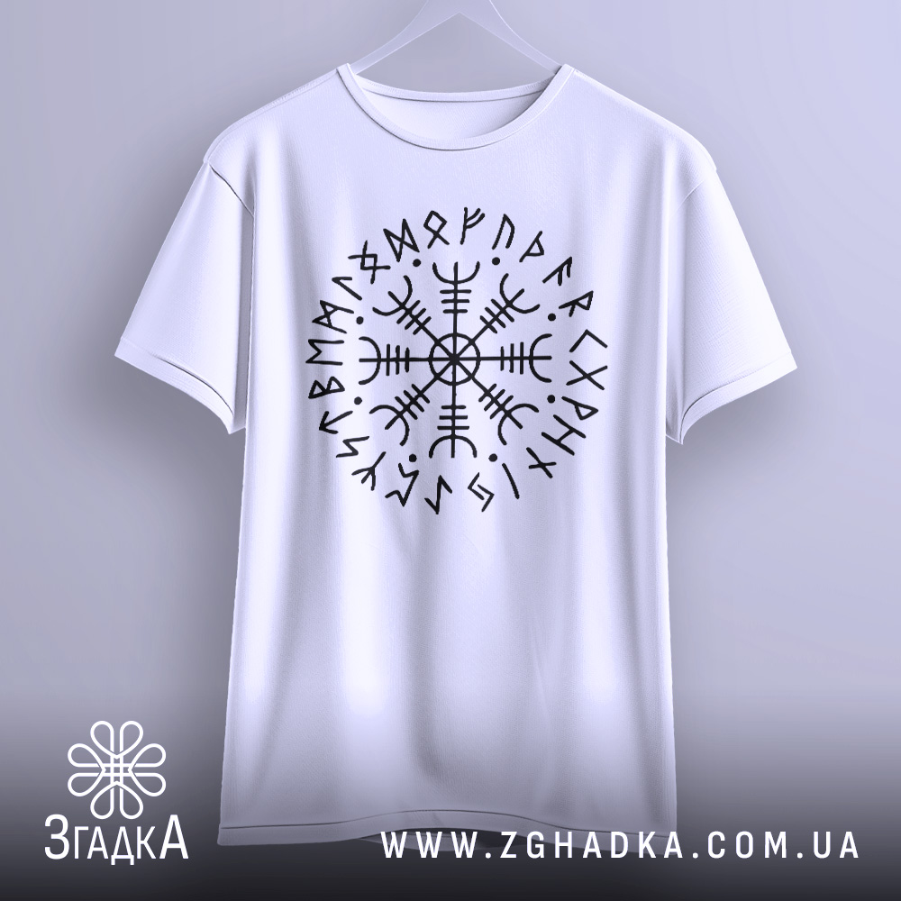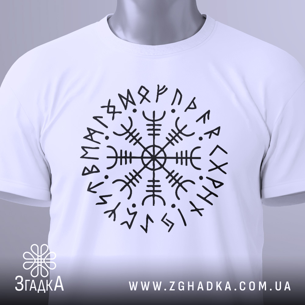 Ця футболка виготовлена з високоякісних матеріалів і прикрашена принтом з рунами вікінгів, що символізують силу, мудрість та захист. Вона не лише стильна, а й має глибоке значення, яке відображає вашу любов до історії та культури.