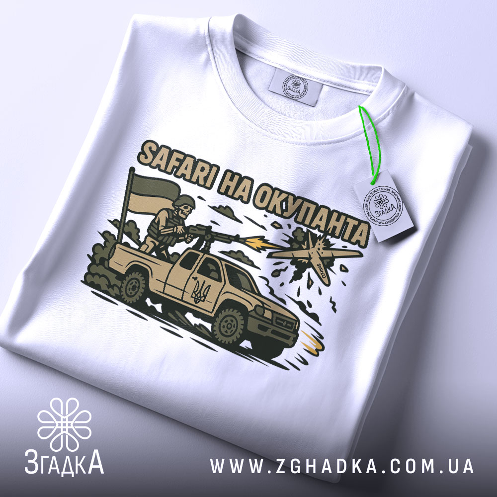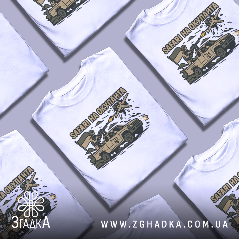 Футболка сафарі на окупанта – це не просто одяг, а вираження вашої думки. Принт символізує боротьбу за свободу та незалежність, що робить її ідеальною для тих, хто цінує свою позицію.