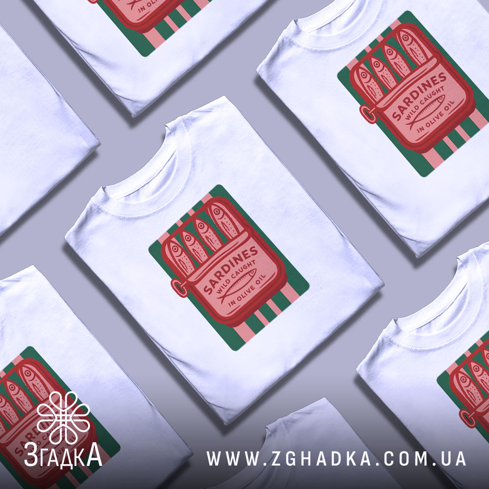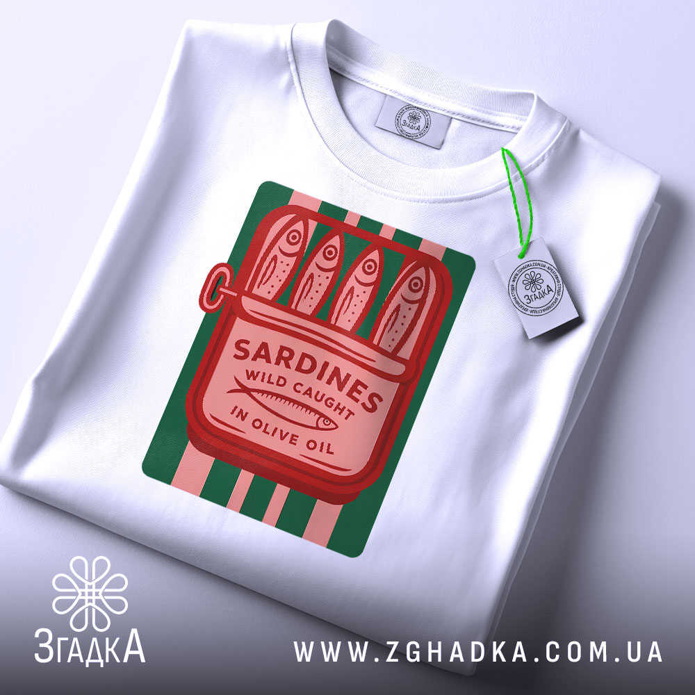 Футболка сардини – це не просто одяг, а вираження вашого стилю та почуття гумору. Принт з сардиною символізує легкість і радість, що робить її ідеальним вибором для повсякденного носіння.