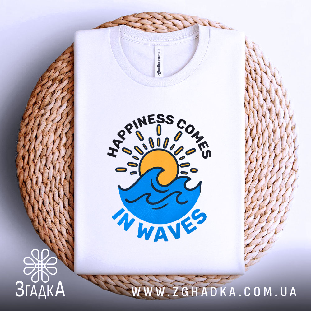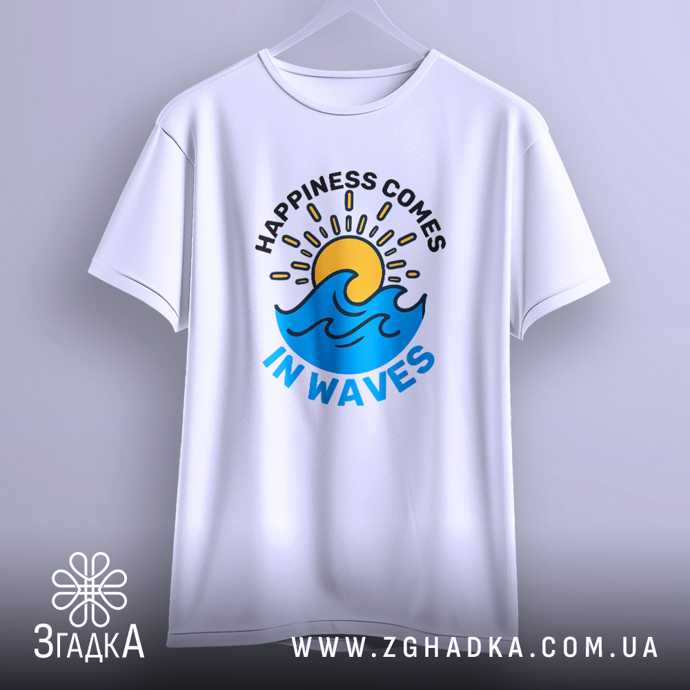 Футболка щастя у хвилях – це не лише стильний елемент гардеробу, а й символ позитиву та радості. Обирайте її для себе або як подарунок, і відчуйте щастя кожного дня.