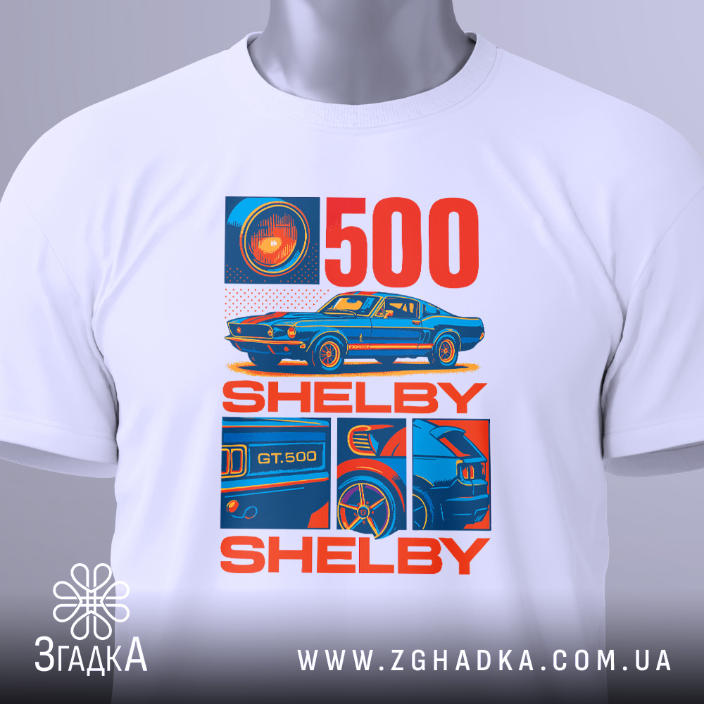 Футболка Shelby GT – ідеальний вибір для автолюбителів. Стильний принт та комфортний матеріал роблять її незамінною частиною гардеробу.