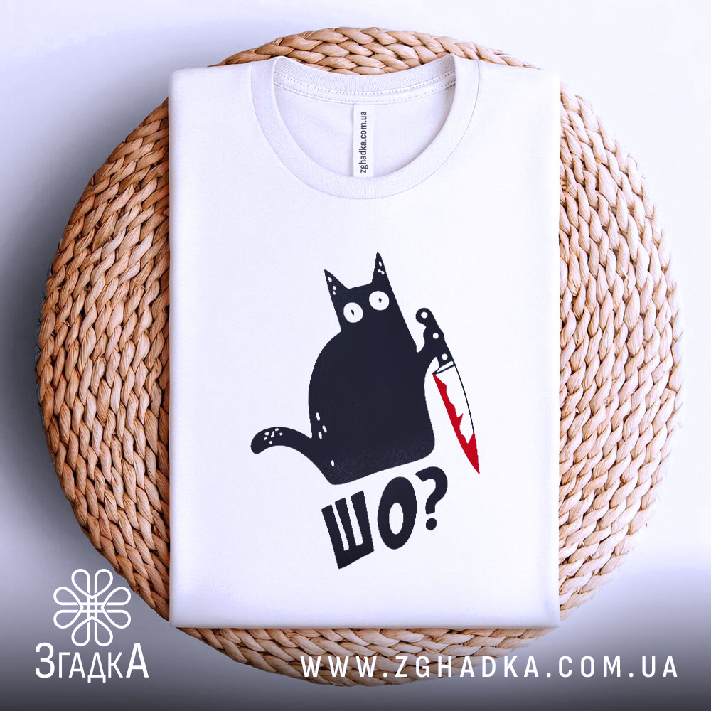 Футболка шо чорний кіт – це не просто одяг, а стильний акцент у вашому гардеробі, який підкреслить вашу індивідуальність та смак.