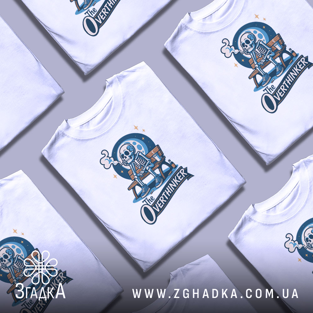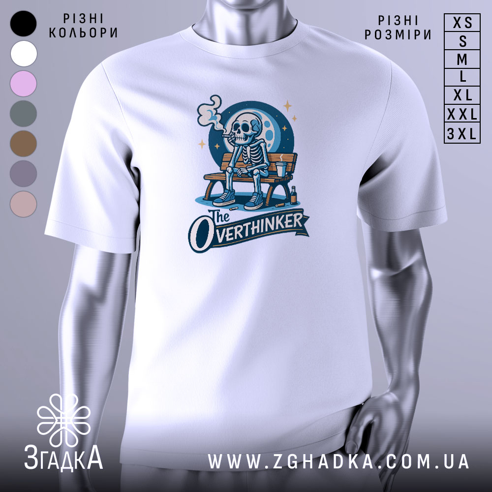 Футболка скелет овердумер – це не просто одяг, а вираження індивідуальності. Принт з веселим скелетом нагадує про те, що життя коротке, тож варто насолоджуватись кожним моментом.