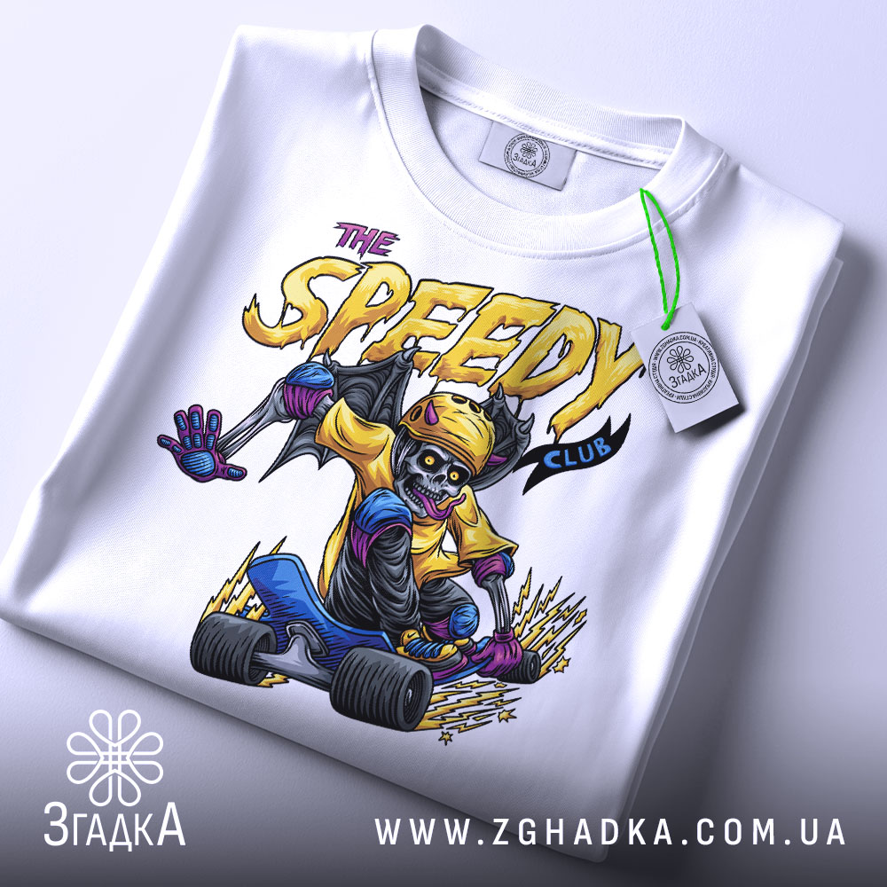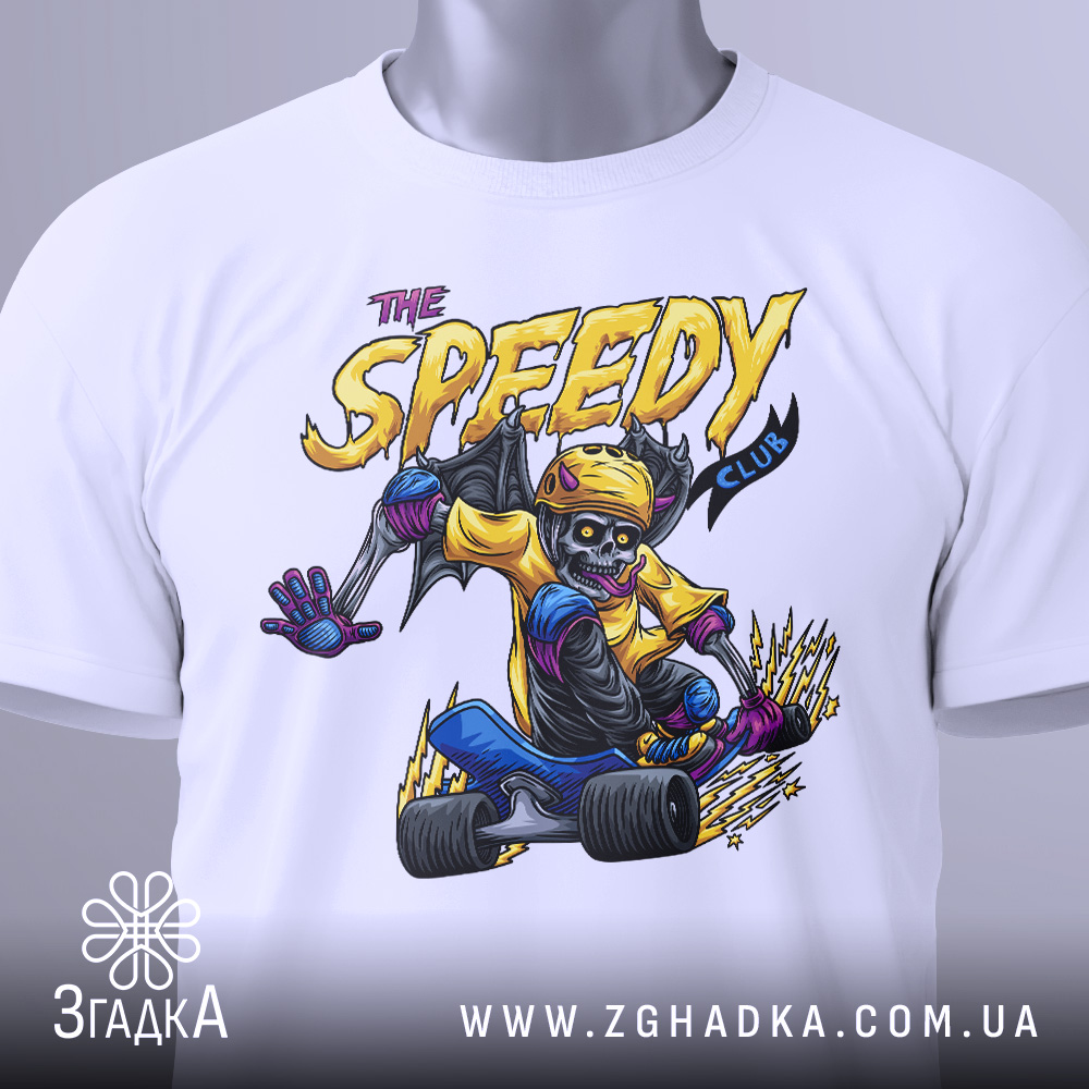 Ця футболка з принтом скелета-скейтера ідеально підходить для любителів активного способу життя. Принт символізує свободу, молодість та безтурботність, що робить цю річ не лише модною, а й значущою.