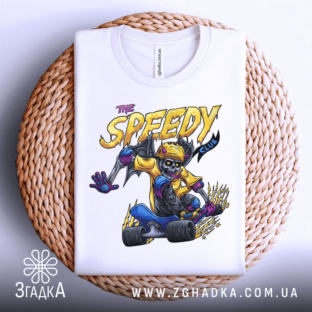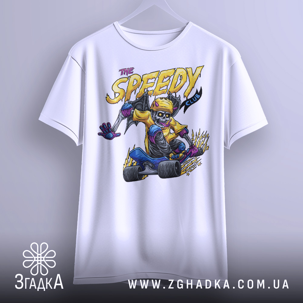 Стильна футболка з принтом скелета-скейтера. Ідеальний вибір для молоді та любителів скейт-культури.