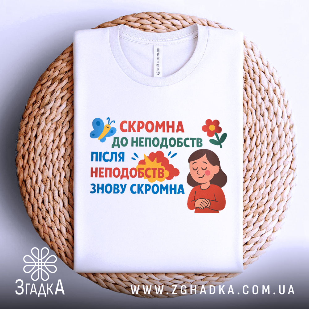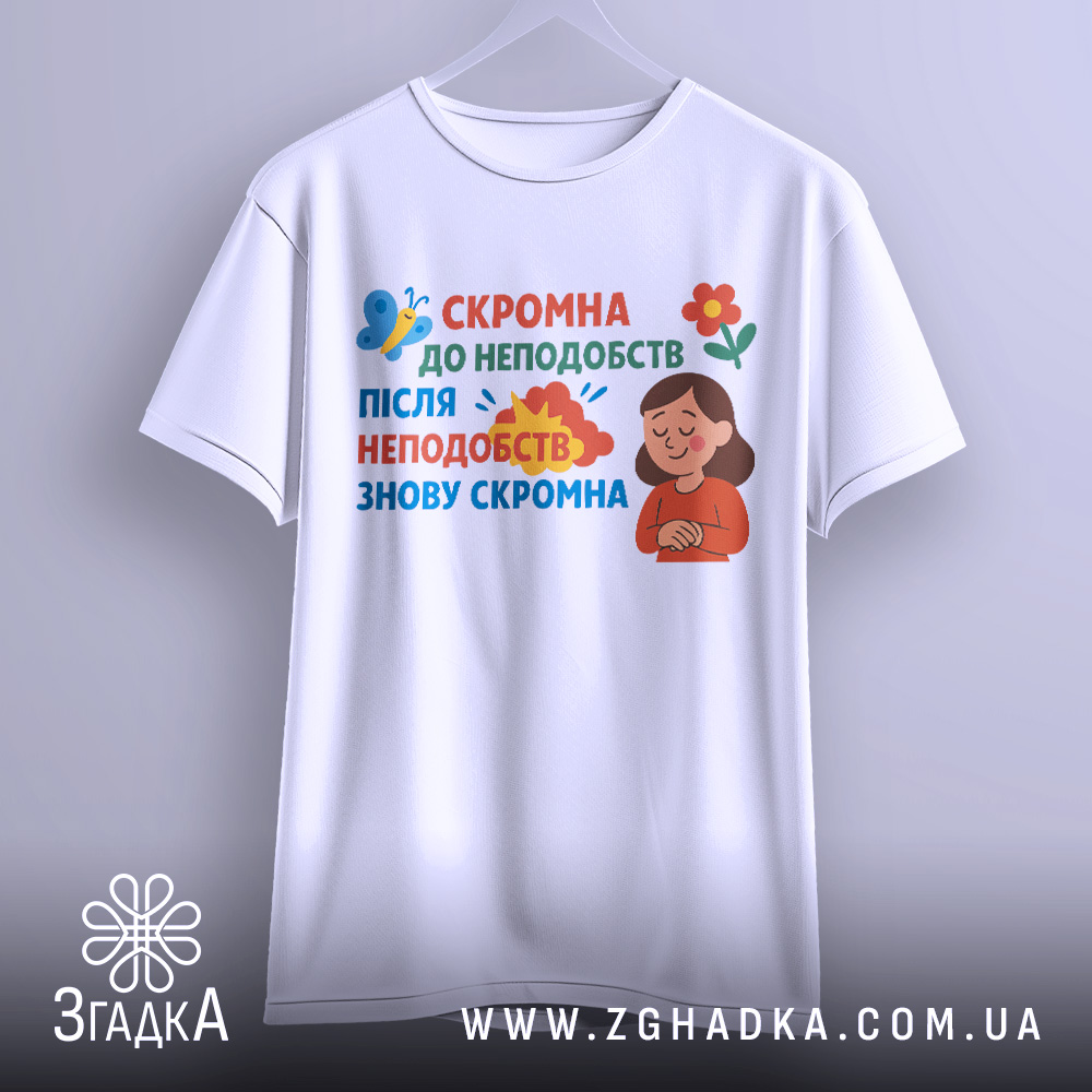 Футболка скромна до неподобств – це ідеальний вибір для тих, хто цінує стиль, комфорт і якість. Вона стане незамінним елементом вашого гардеробу.